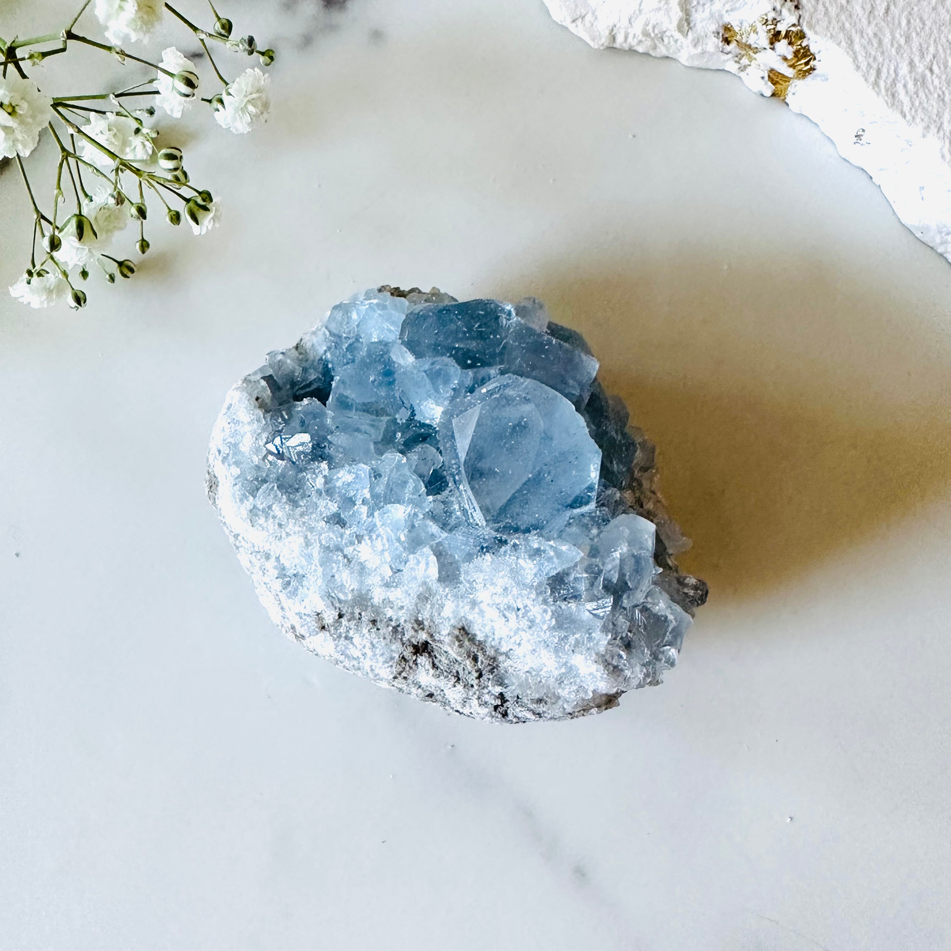 冷たく美しい氷の結晶をギュッと詰め込んだようなアイスブルーのセレスタイト。