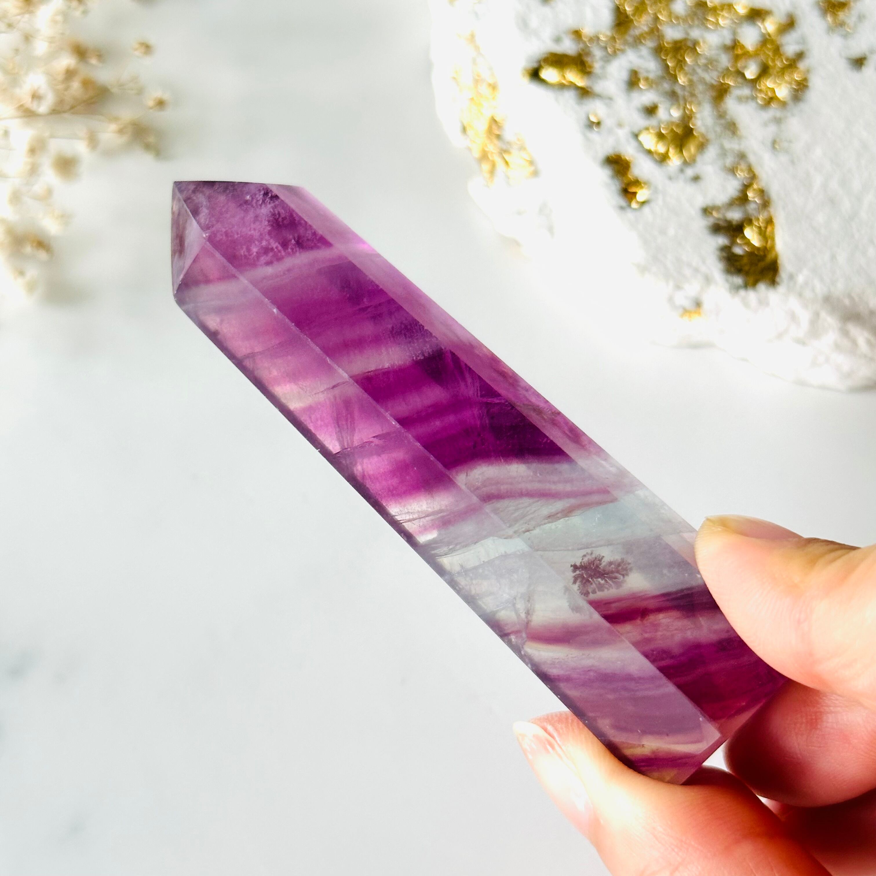 美しいパープルのフローライトに差し色で淡いブルーグリーンが入っています。