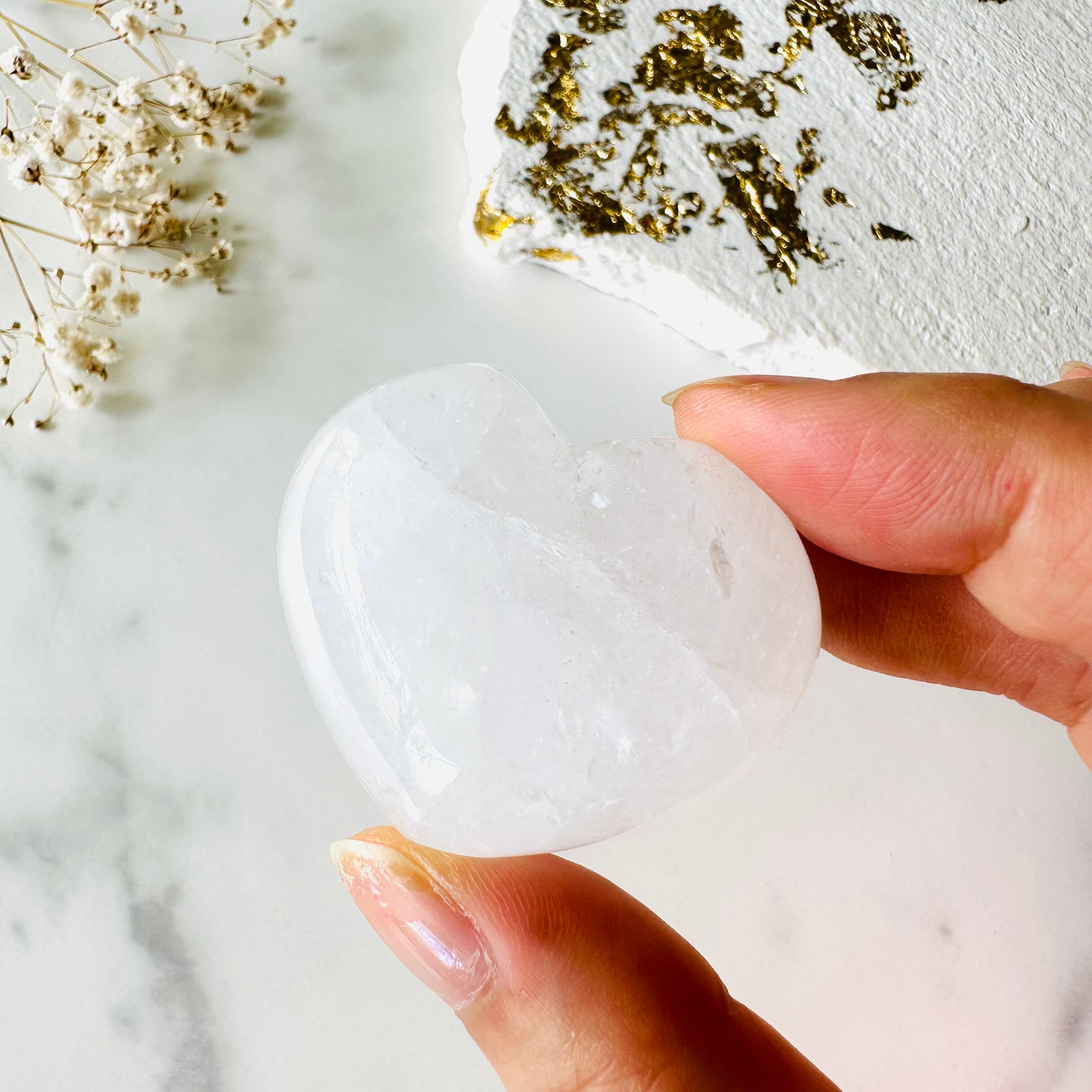 ぷっくりとした形が愛らしい水晶パームストーンです。握りやすいサイズで角度を変えるとクラックが可愛らしくキラキラと瞬きます。透明感のある優しい光は疲れた心にそっと寄り添い癒してくれるかのようです。