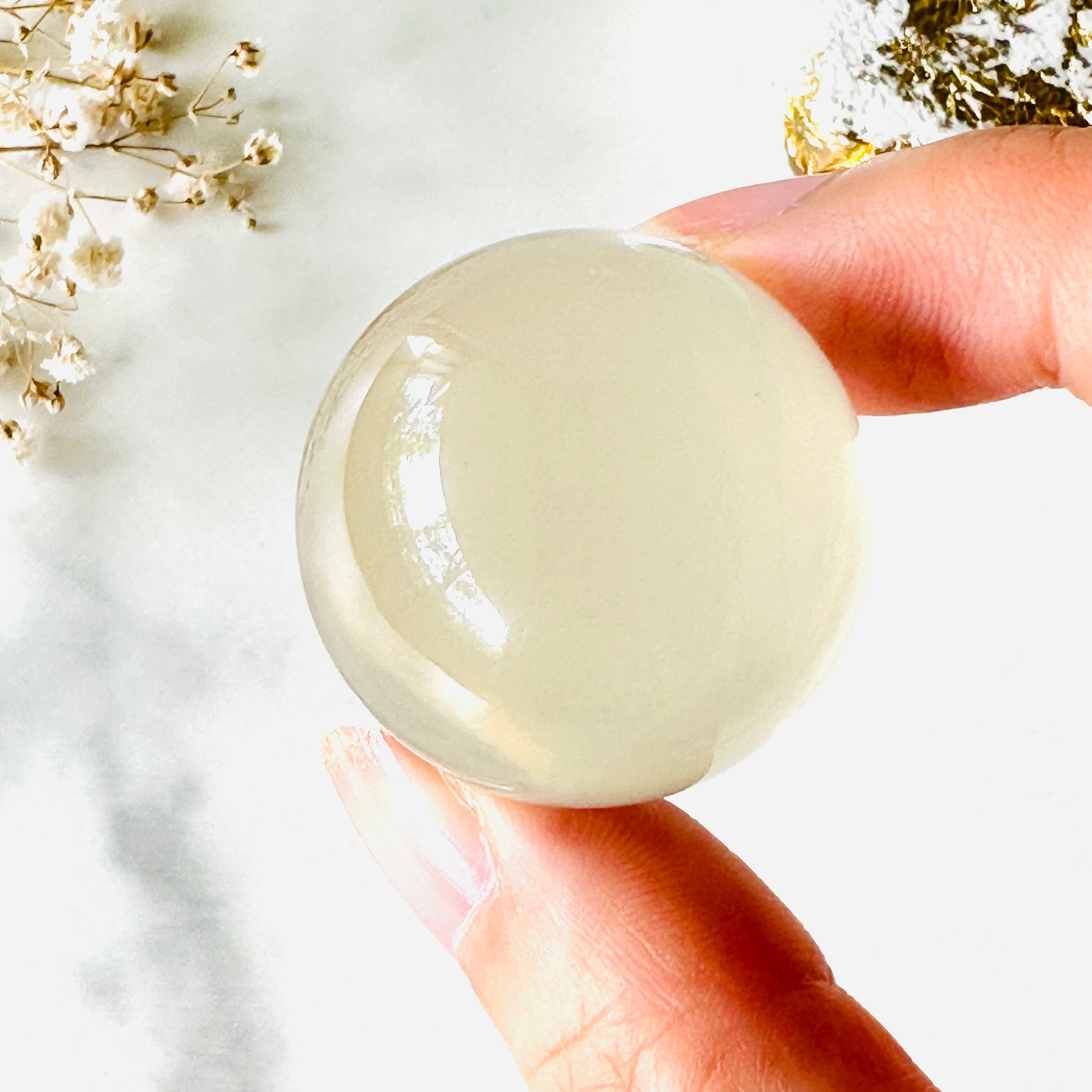 淡く柔らかいミルキーカラーが印象的なミルキーイエローのスフィアです。