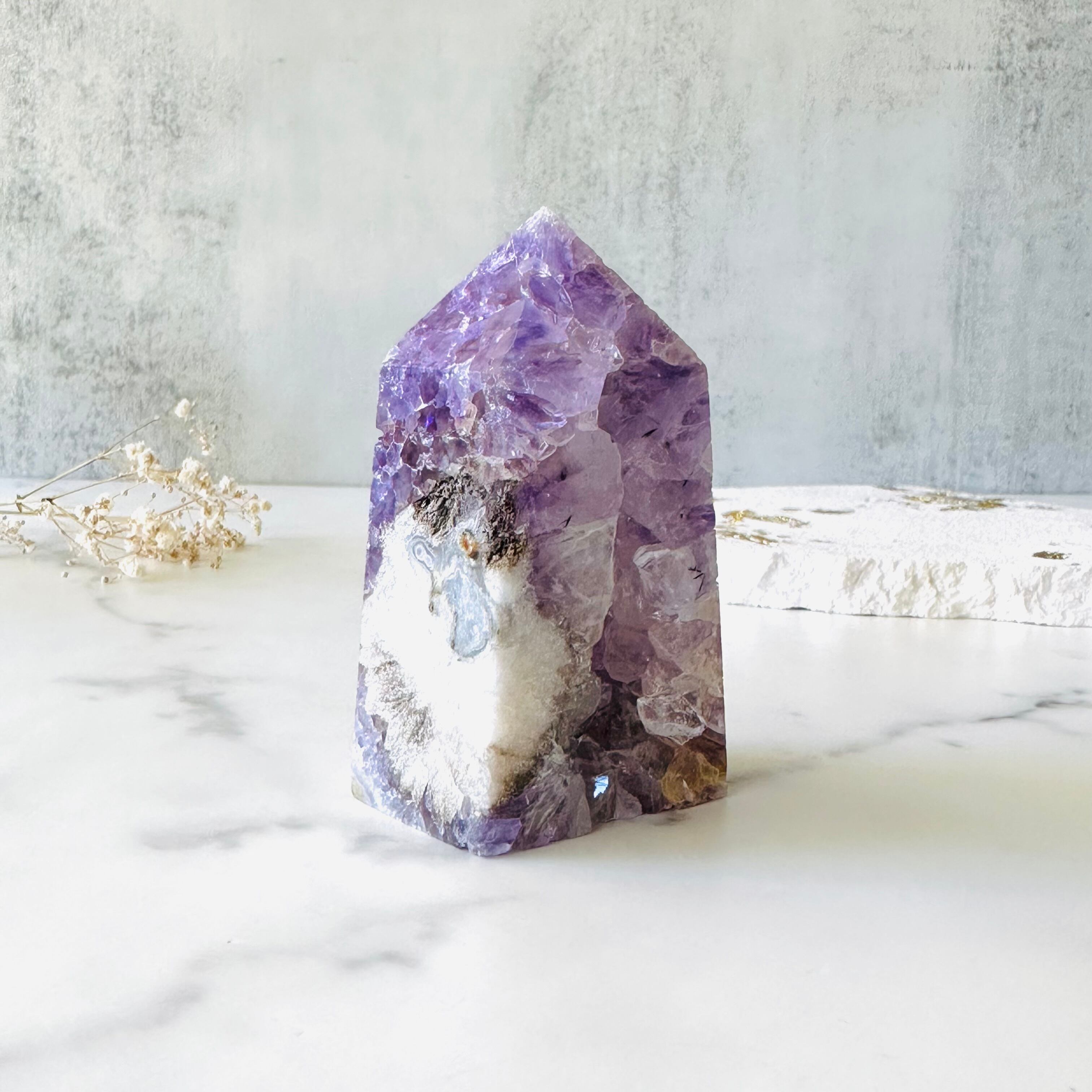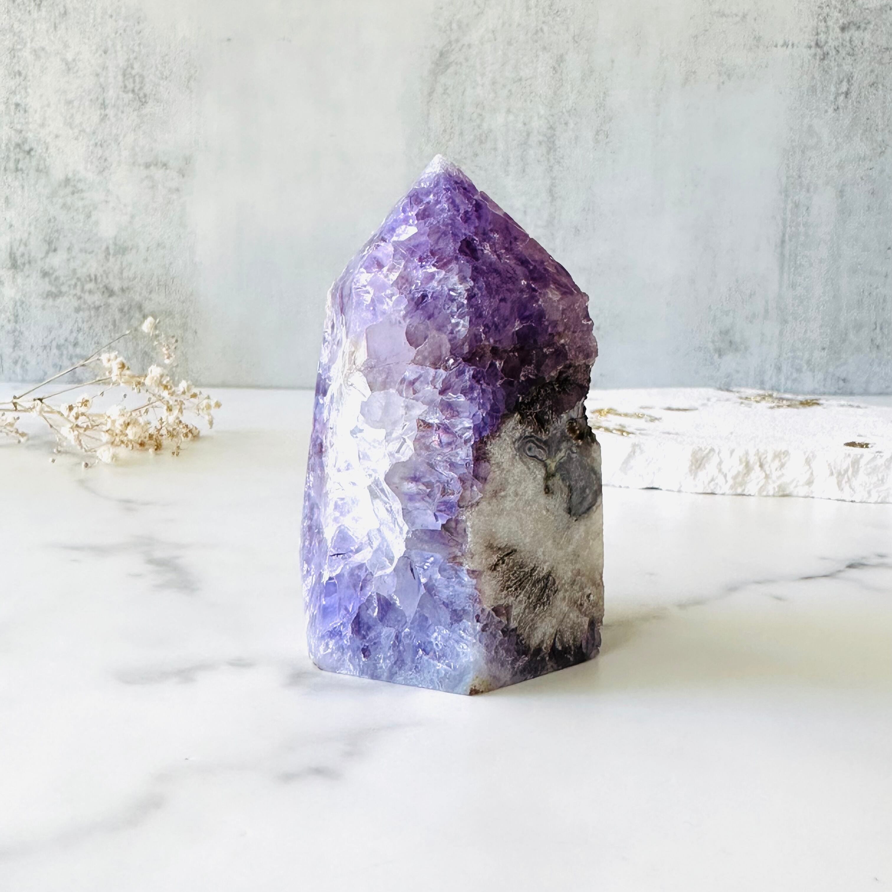 きれいな紫色でザクザク結晶が魅力のアメジストアゲートタワー。
