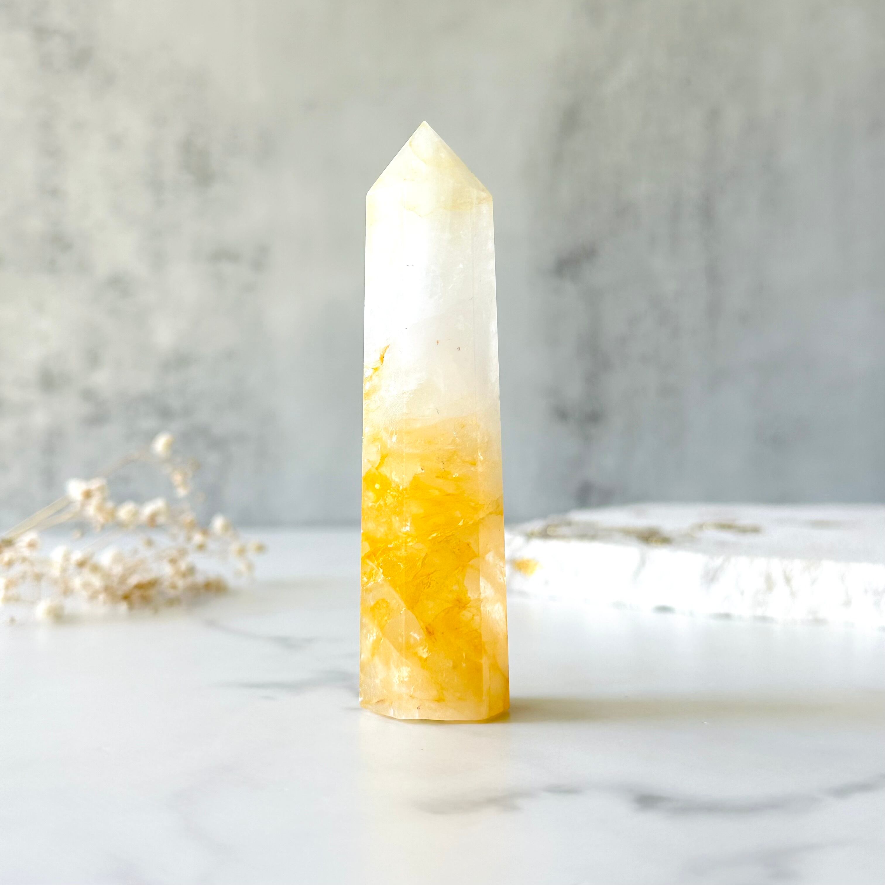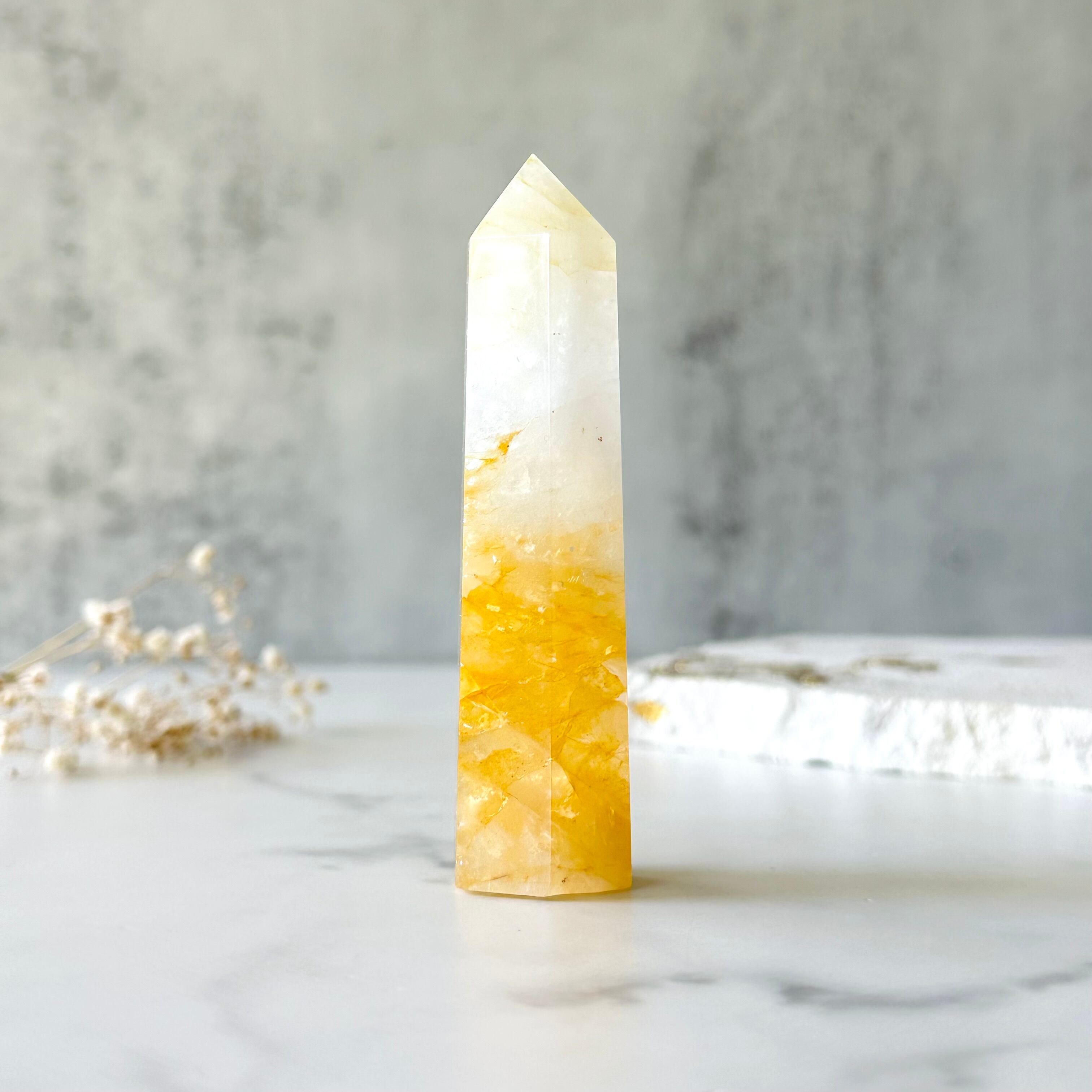 強力なヒーリングパワーを持つことで知られる水晶、ゴールデンヒーラー。明るい金色の輝きを放つこの石は、身体や感情に対する強いヒーリング効果をもつと言われており、世界中のヒーラーさんや人を癒すお仕事をする方々から人気です。ネガティブなものを払拭し、持ち主が前向きになれるようサポートしてくれます。空間の浄化にも効果的と言われています。