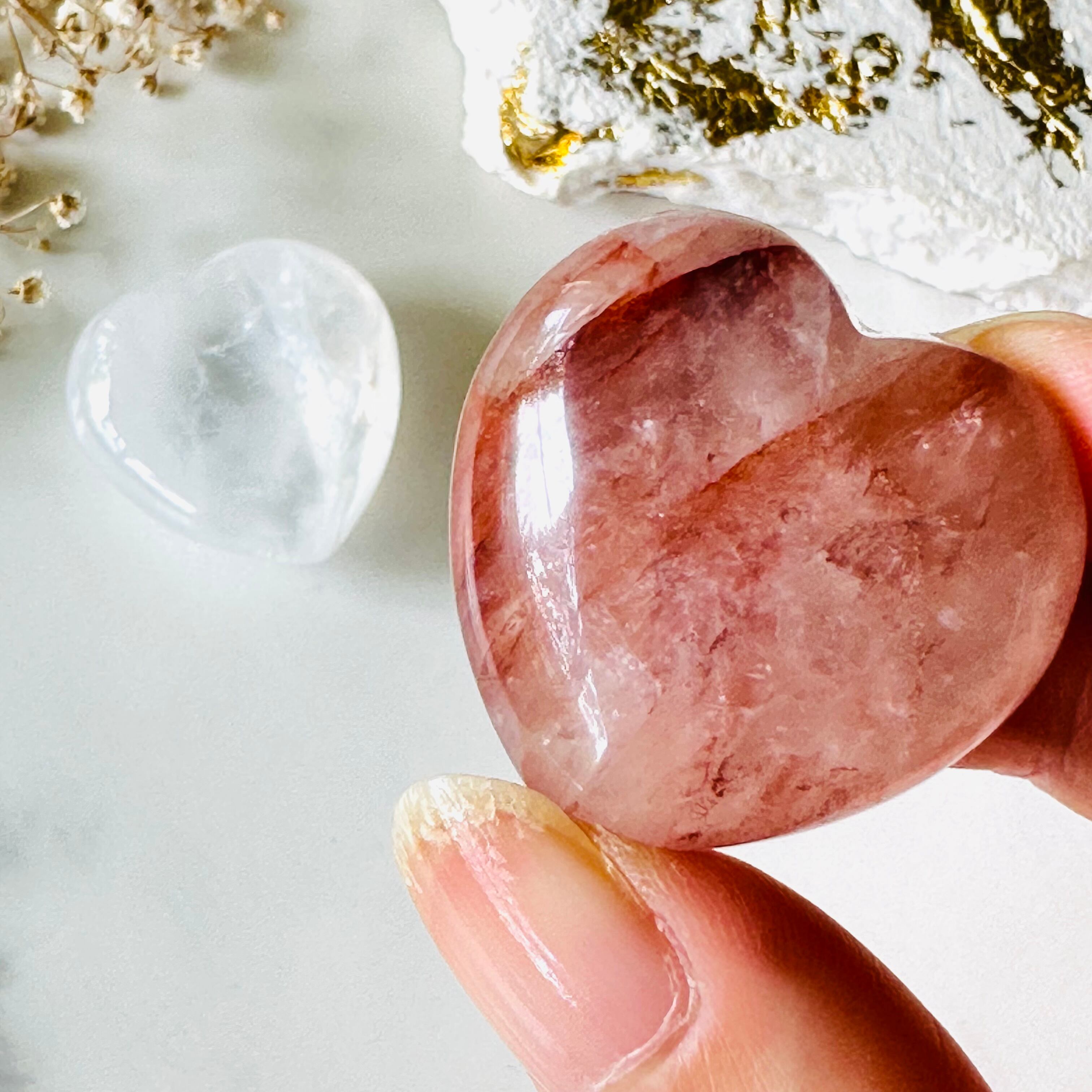 ハートストーンセット(ファイヤークォーツ&クリアクォーツ)