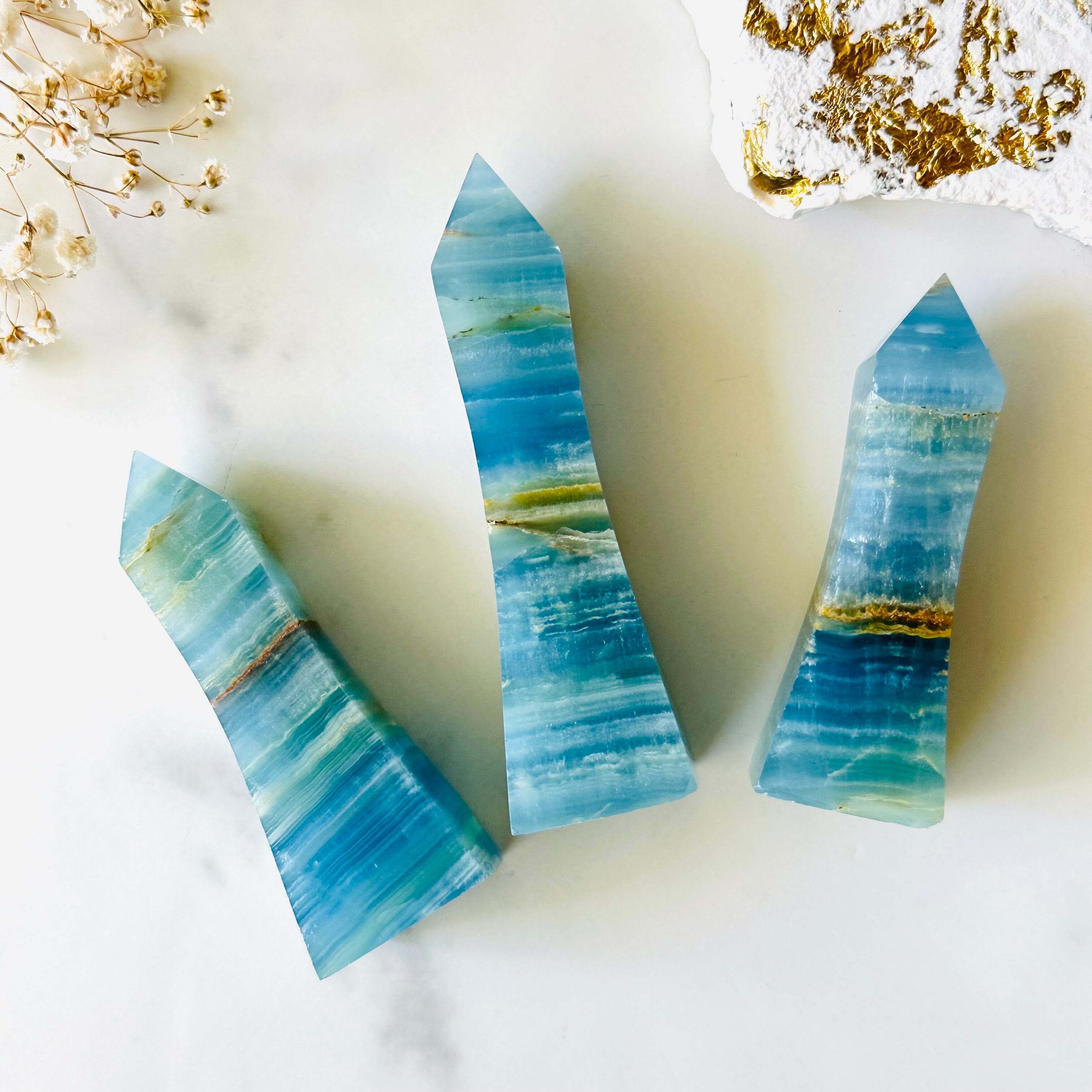 海のような空のようなインディゴブルーが美しいブルーオニキスタワーの3本セットです。
