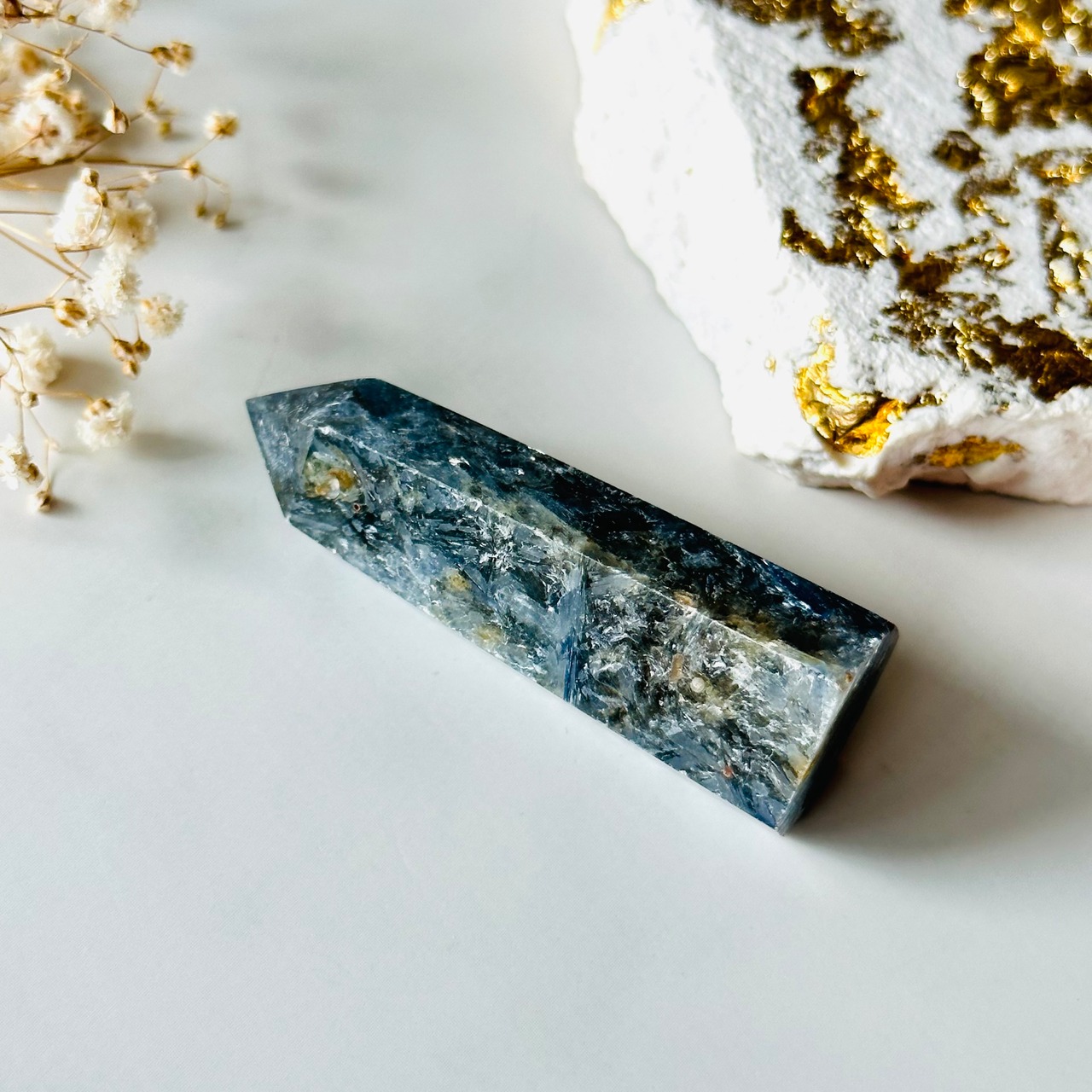 ゴッホの名作「星月夜」を思わせる美しいブルーのカイヤナイトタワーです。