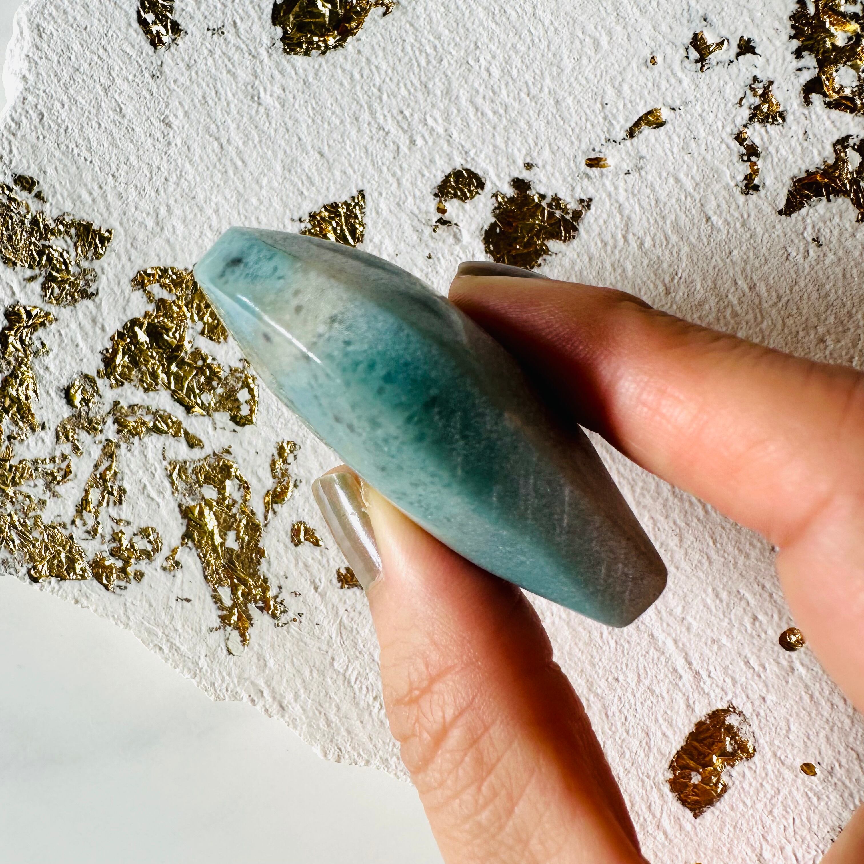 ふんわりとした抽象的な印象のあるトロレアイト。絵本の中の世界のようにメルヘンで可愛らしく、どこか懐かしい気持ちにさせてくれる不思議な雰囲気を持つ石です。淡いブルーと白がソーダのようにシュワシュワと混じり合う美しいアイテムです。