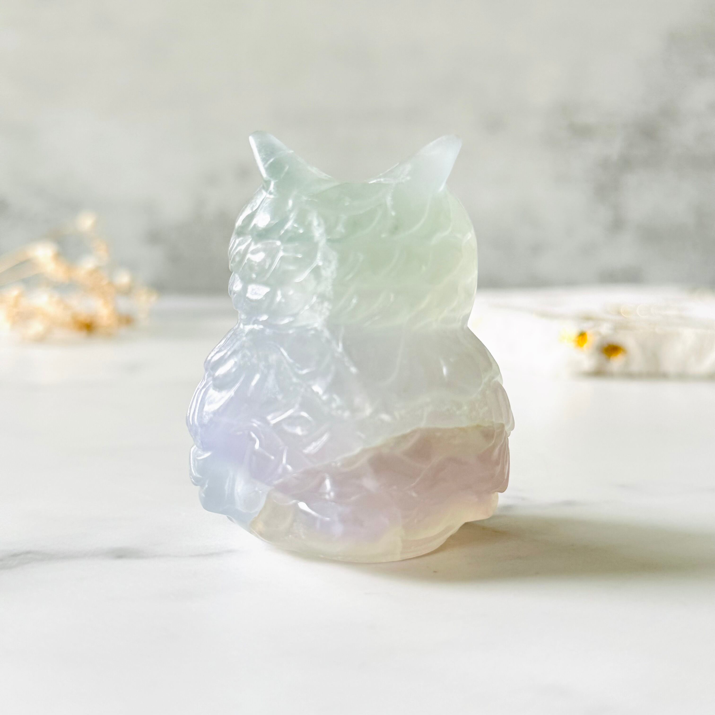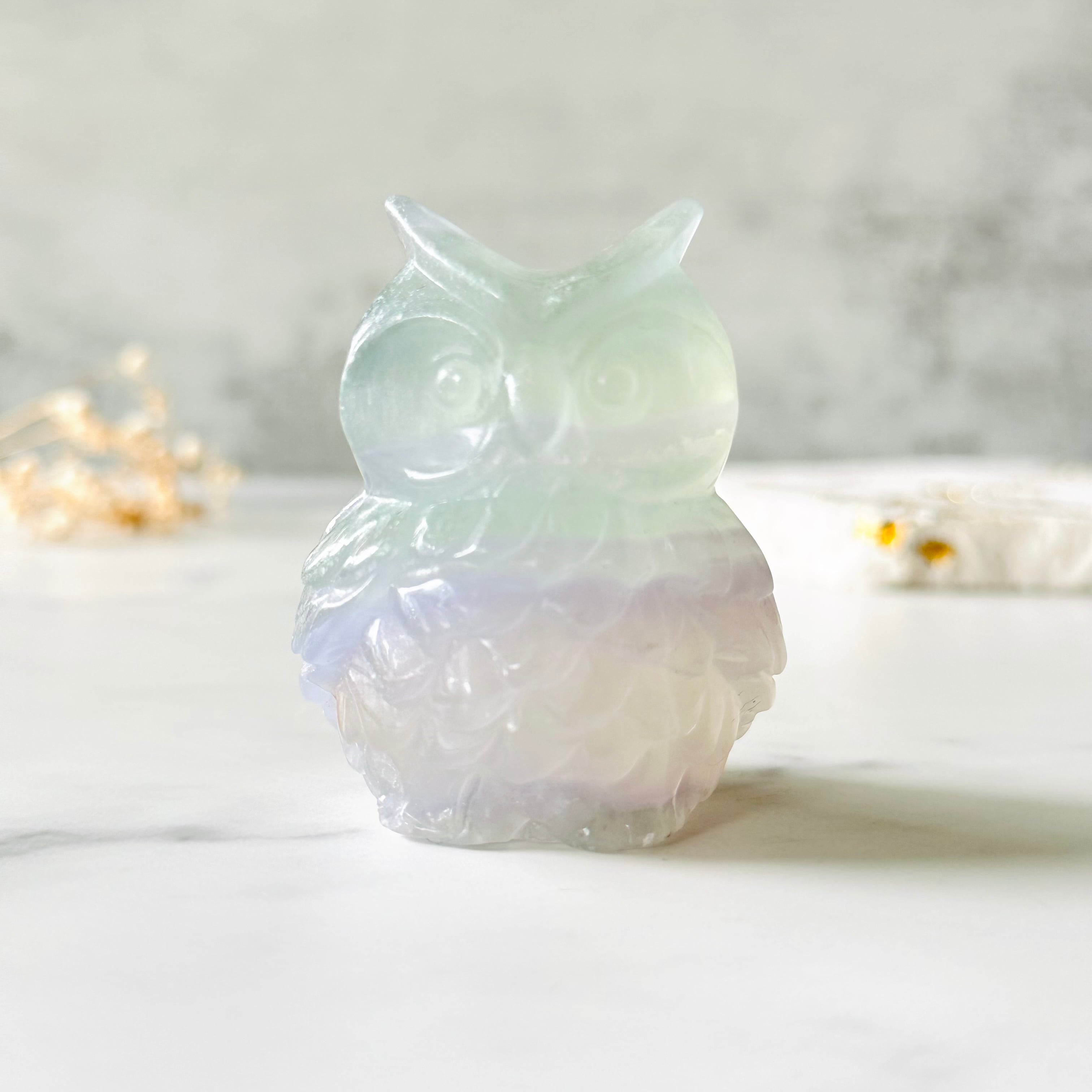 ふんわり優しい印象のイットリウムフローライトのフクロウさん。