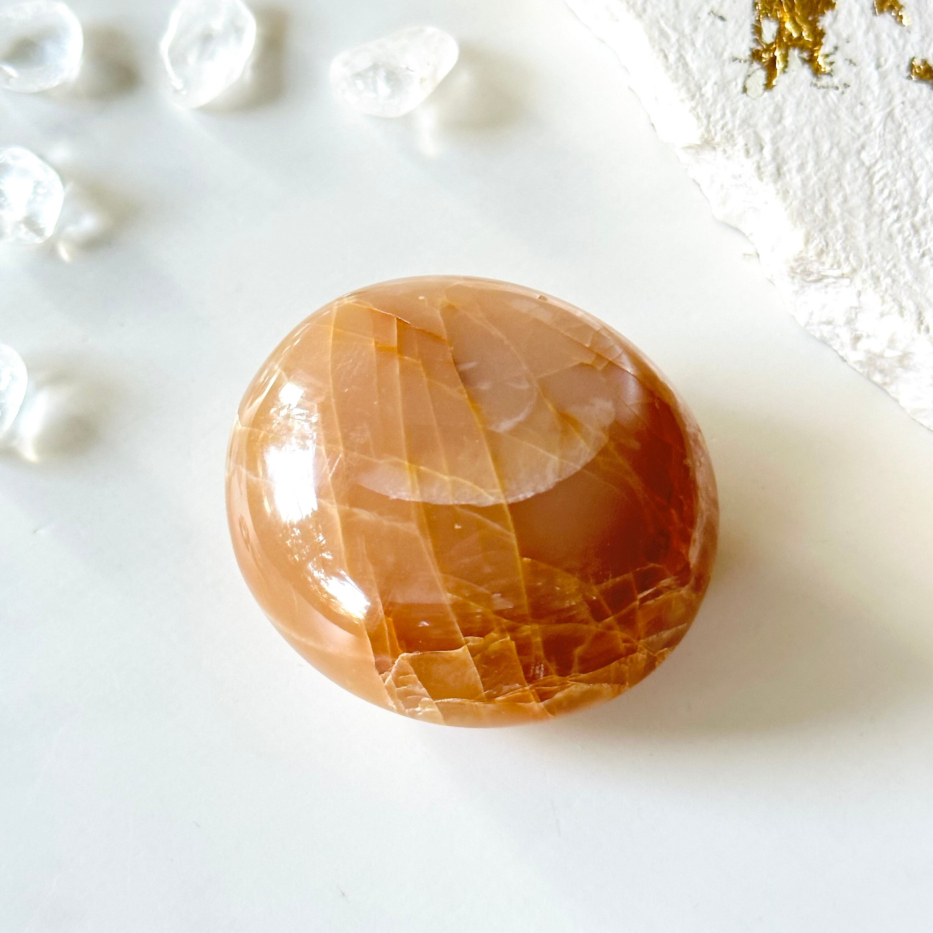 特に妊娠中や産後のお守りとして有名ですが、それに限らず、生理や更年期に伴う女性特有の辛さを感じたら、この石に意識を向けると良いと言われています。滑らかな石の感触は心地よく手のひらに馴染み、心と体の緊張が緩んで解けていくような安らぎと癒しを感じることができます。