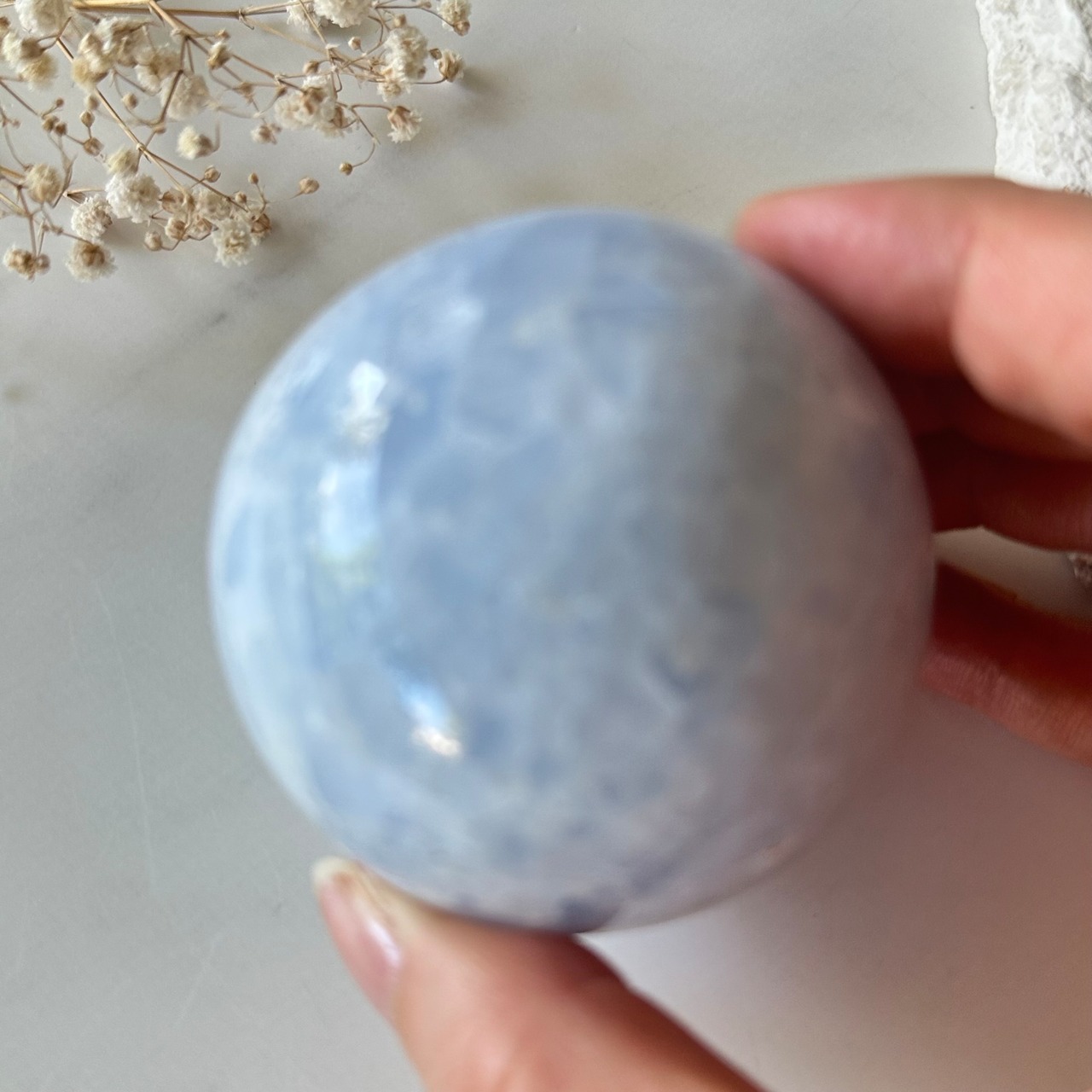 冷たく澄んだ冬の空のようなアイスブルーのセレスタイト。くるくる回すと結晶がキラキラと輝きます。セレスタイトはヒーリング効果が高いと言われていますが、大きさもしっかりとあり、お部屋に飾れば清らかな気持ちになれそうなスフィアです。