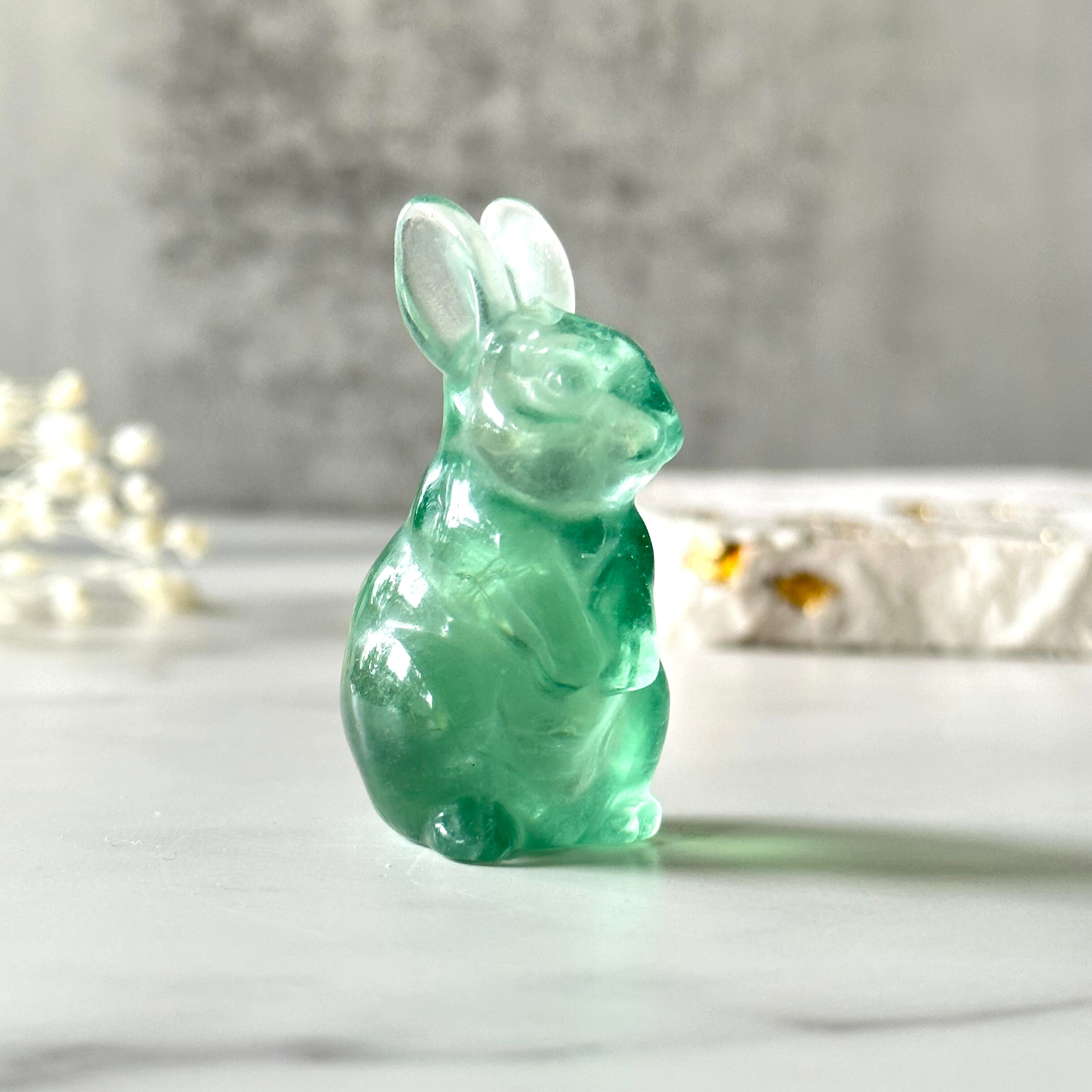 しっかりとしたグリーンの発色が美しく、透明度が高いうさぎさんです。お顔や前足に至るまで丁寧なカーヴィングでとても可愛いです。
