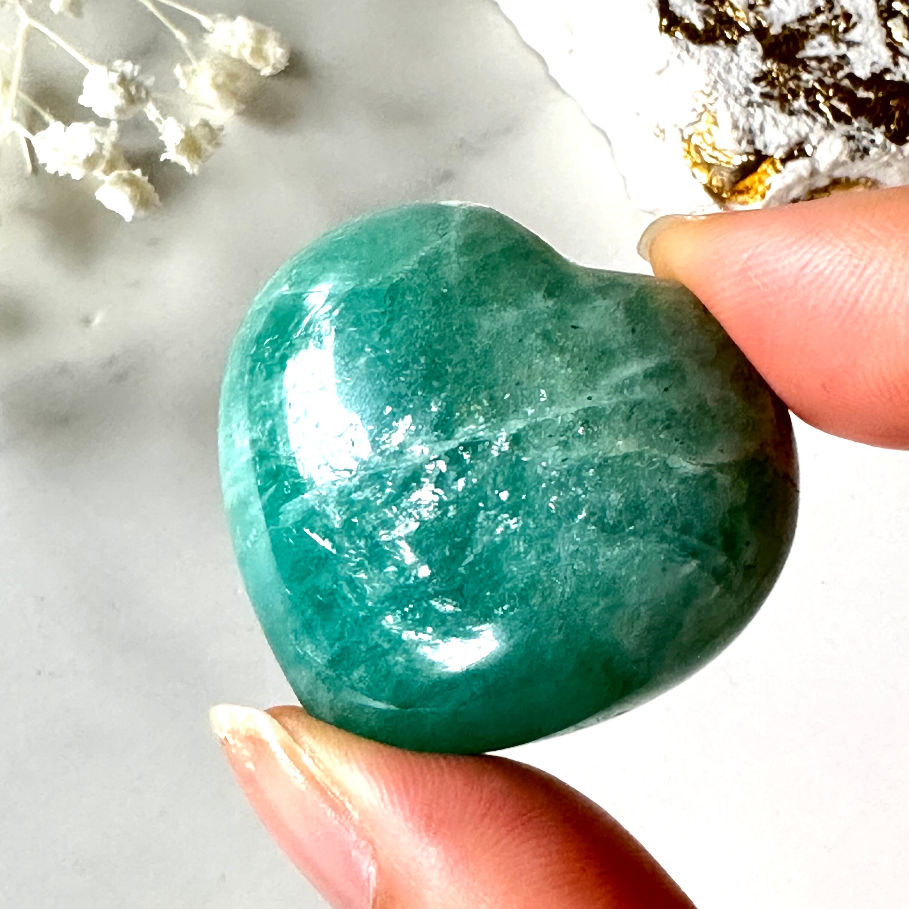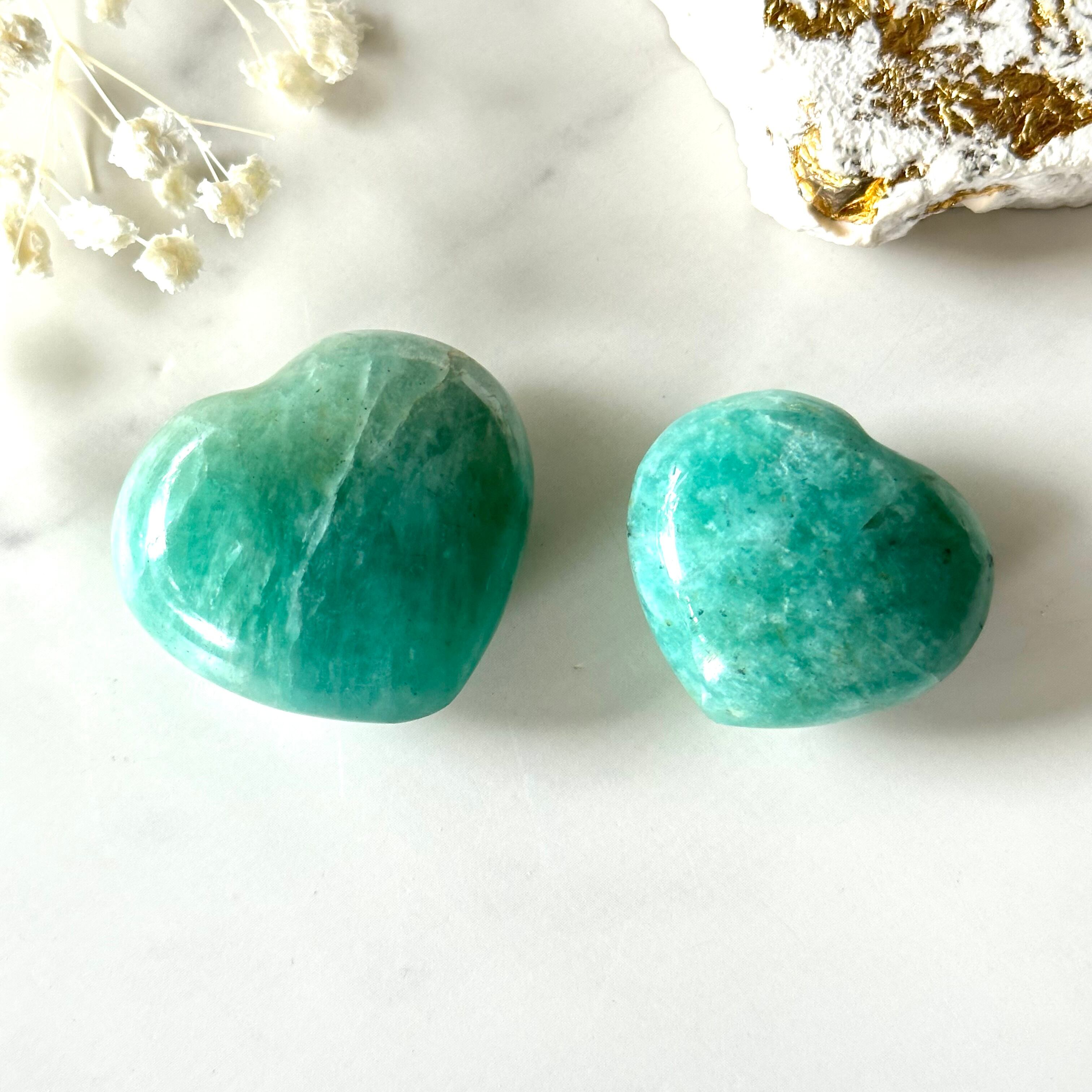 美しいシラーが出るアマゾナイトのハート型ストーンの2個セットです。