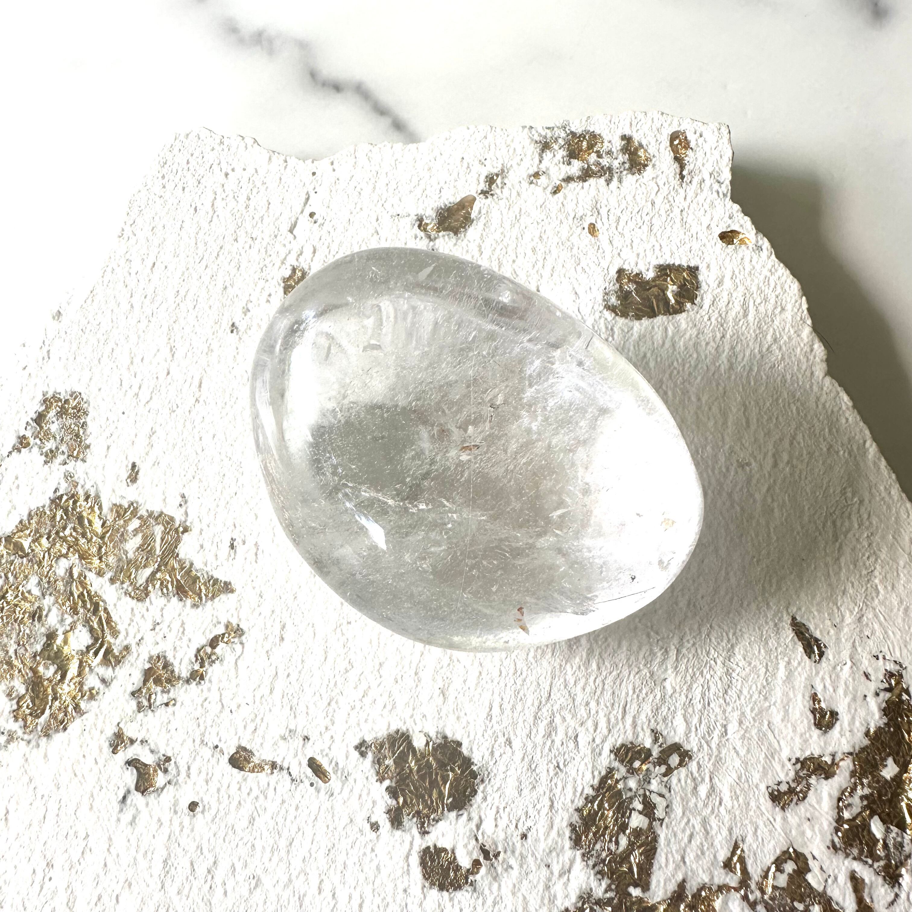 非常にクリアで質の高い水晶です。無造作に置くだけで微粒子のような内包物が繊細な輝きを放ちます。可愛らしい虹も楽しめます。光を入れてくるくると、いつまでも手の中で遊んでいたくなるアイテムです。