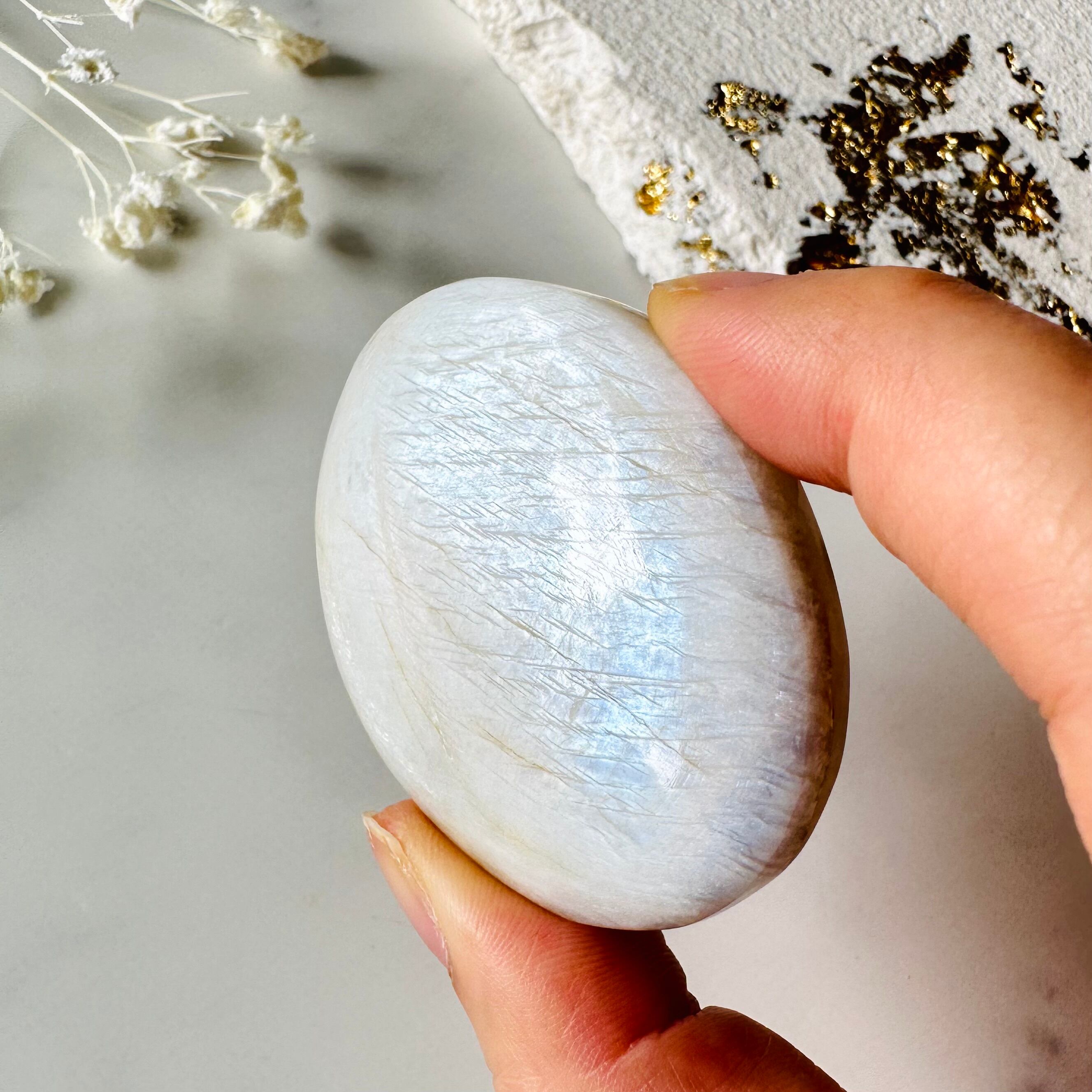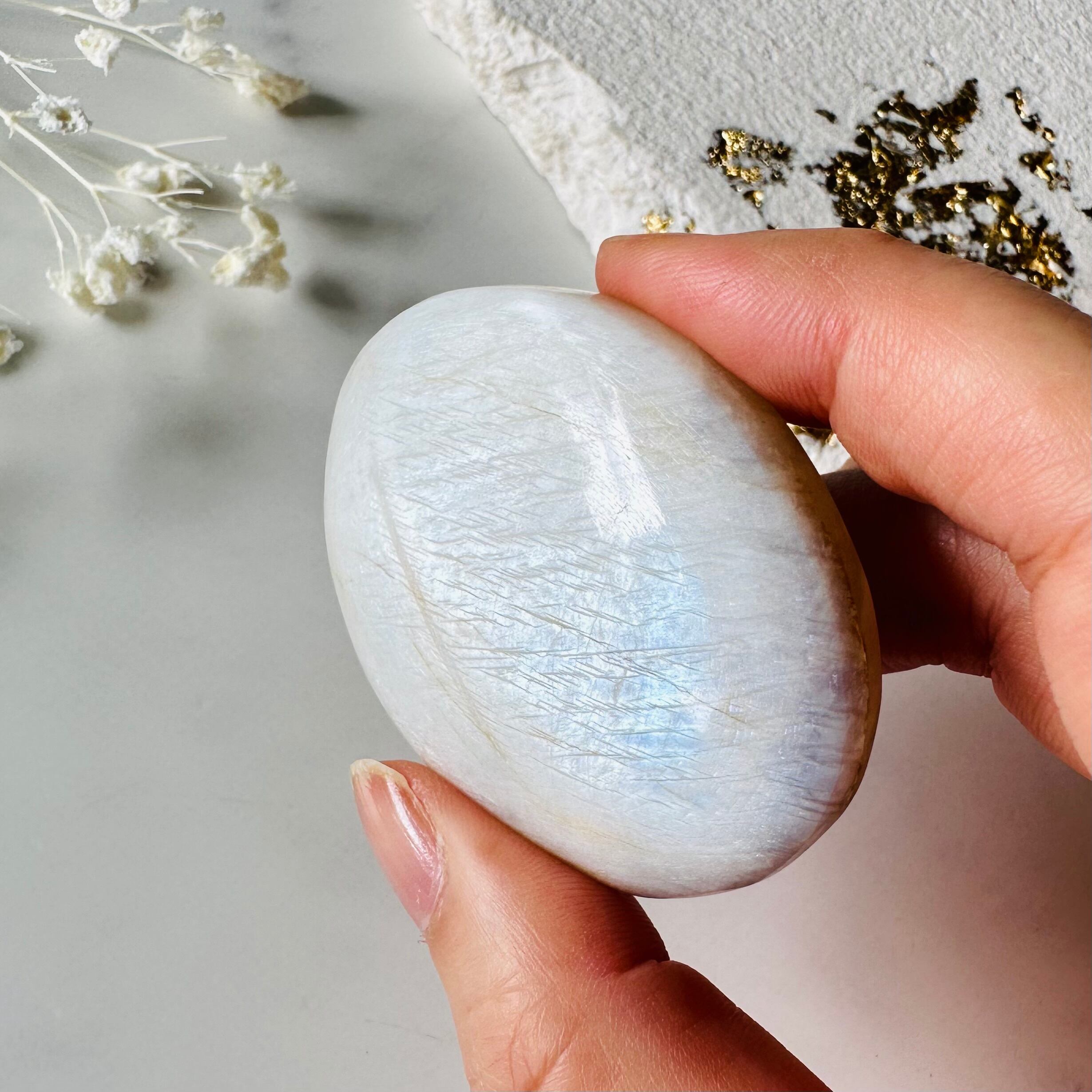 上品な青いシラーが美しい幻想的なムーンストーンのパームです。
