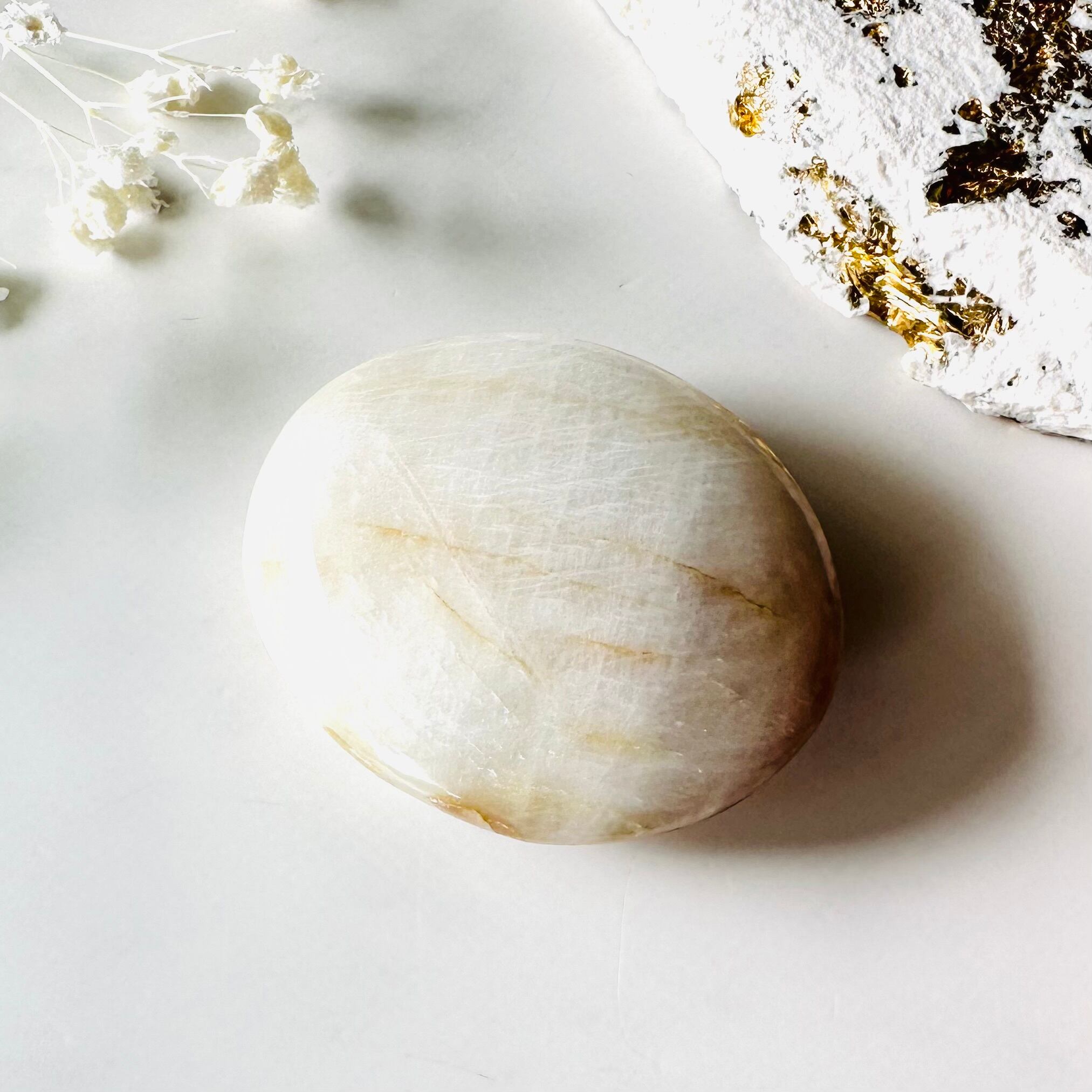 石の表面に、月の光を思わせる神秘的な光(シラー)が浮かぶことから、ムーンストーンと呼ばれます。月は女性性を司り、女性がムーンストーンを持つとより柔らかく女性らしい魅力が花開き、美しさが増すといわれています。