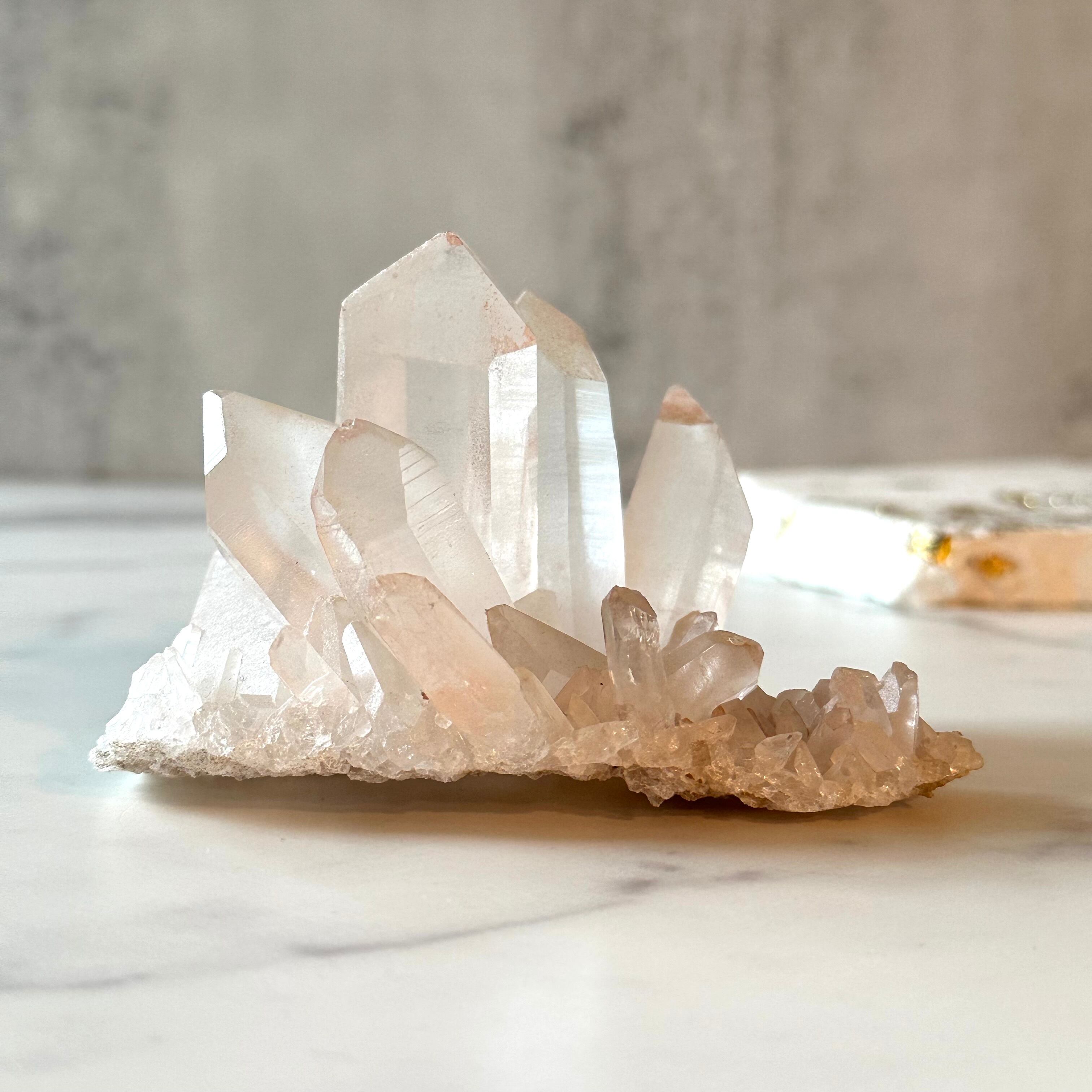 ほんのりピンク色が可愛いピンク水晶のクラスターです。
