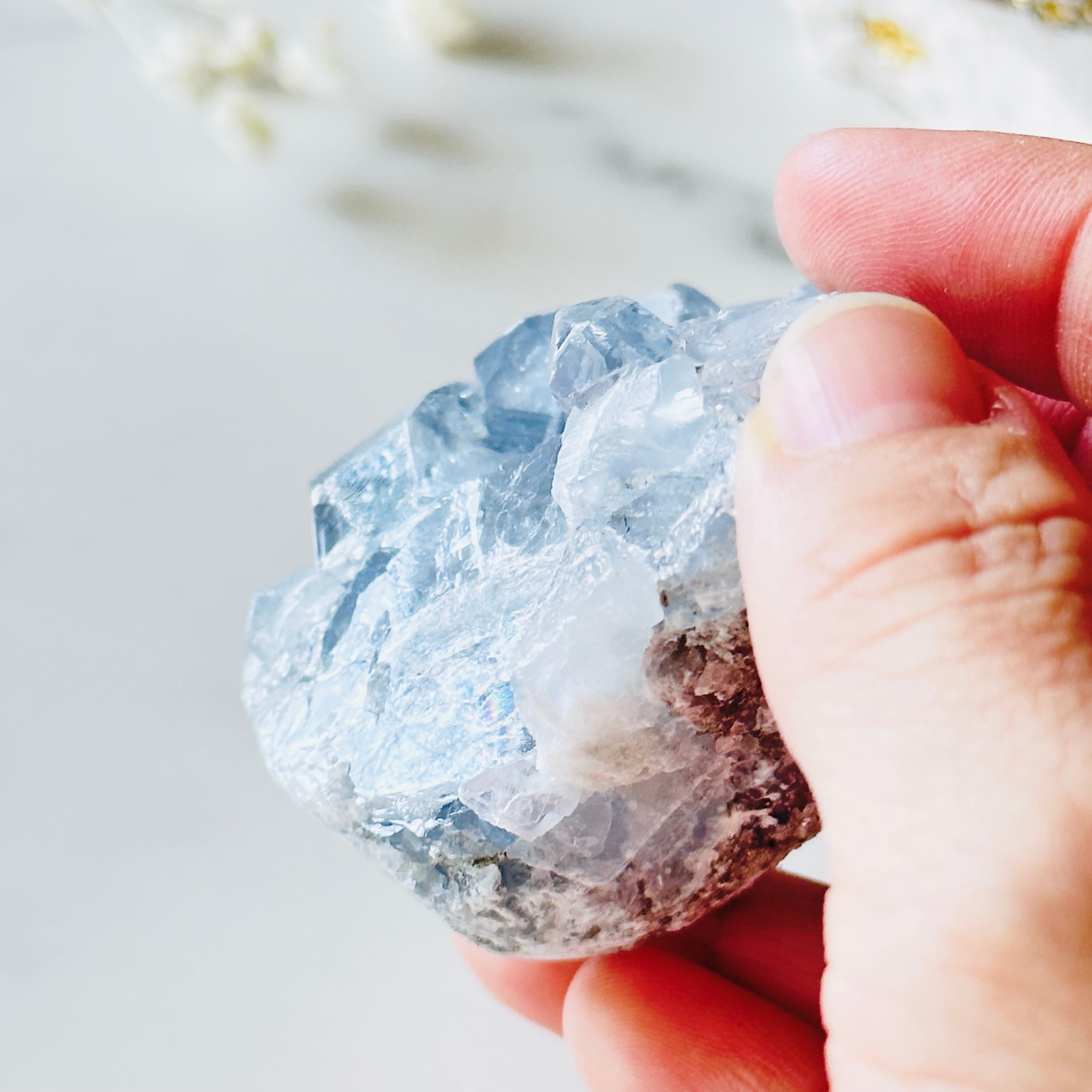 セレスタイトは硬度が低く、壊れやすいのでお取り扱いにはご注意ください。