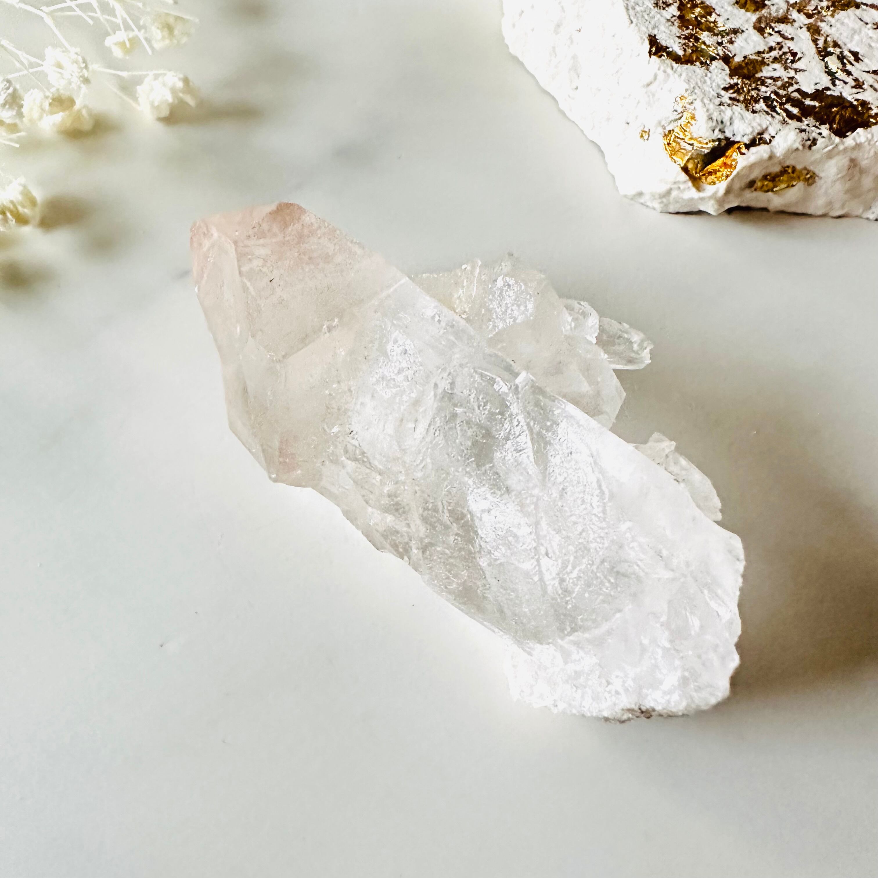 ほんのりピンク色が可愛いピンク水晶の単結晶です。この色合いは酸化したヘマタイトで、ピンクの色味が濃く多いほど人気です。
