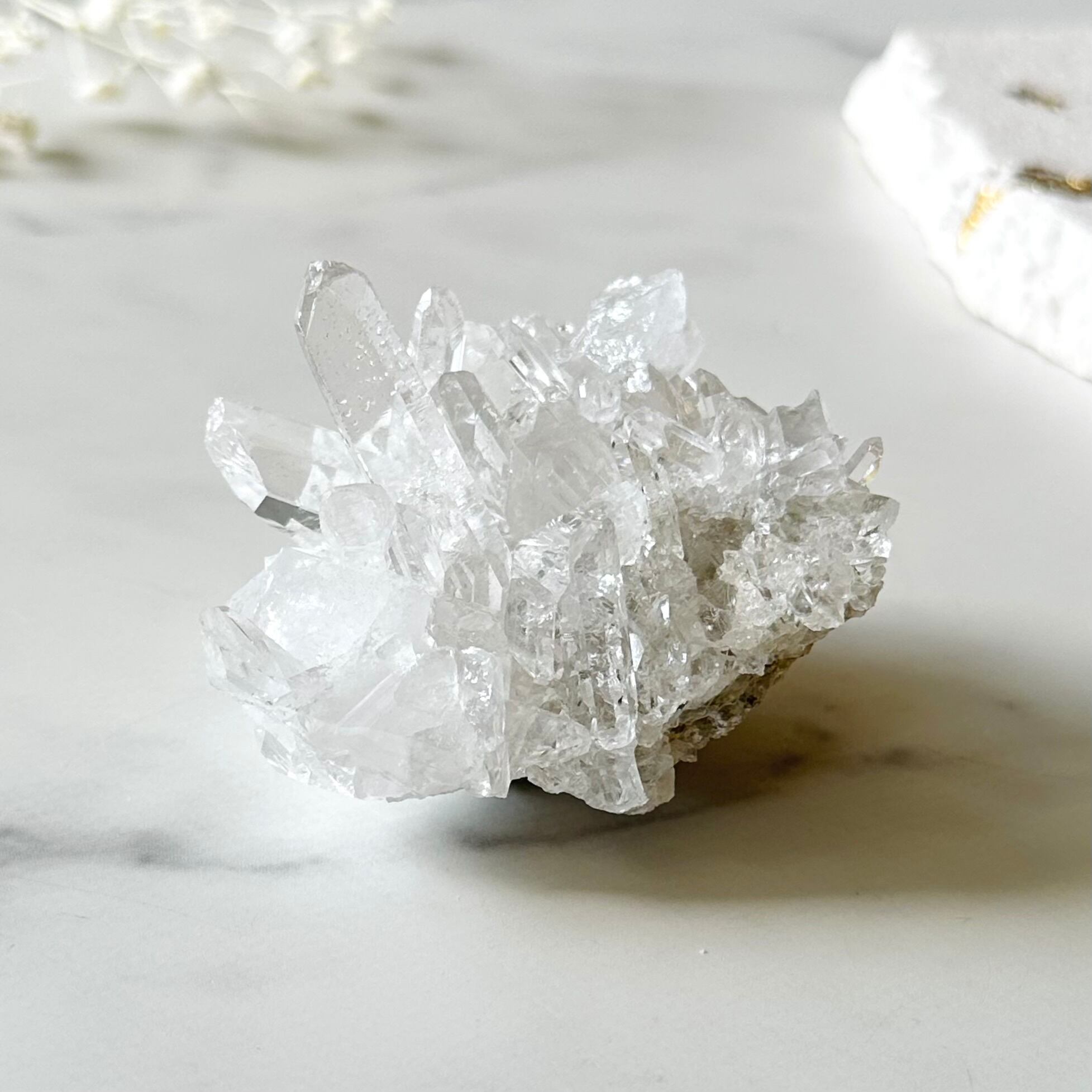 氷のような透明感と神秘的な輝きを宿したゼッカデソウザ産クリスタルです。美しいグリフが刻まれ、置いているだけで人の心を浄化する力があります。神聖で強いエネルギーを感じるマスタークリスタルです。