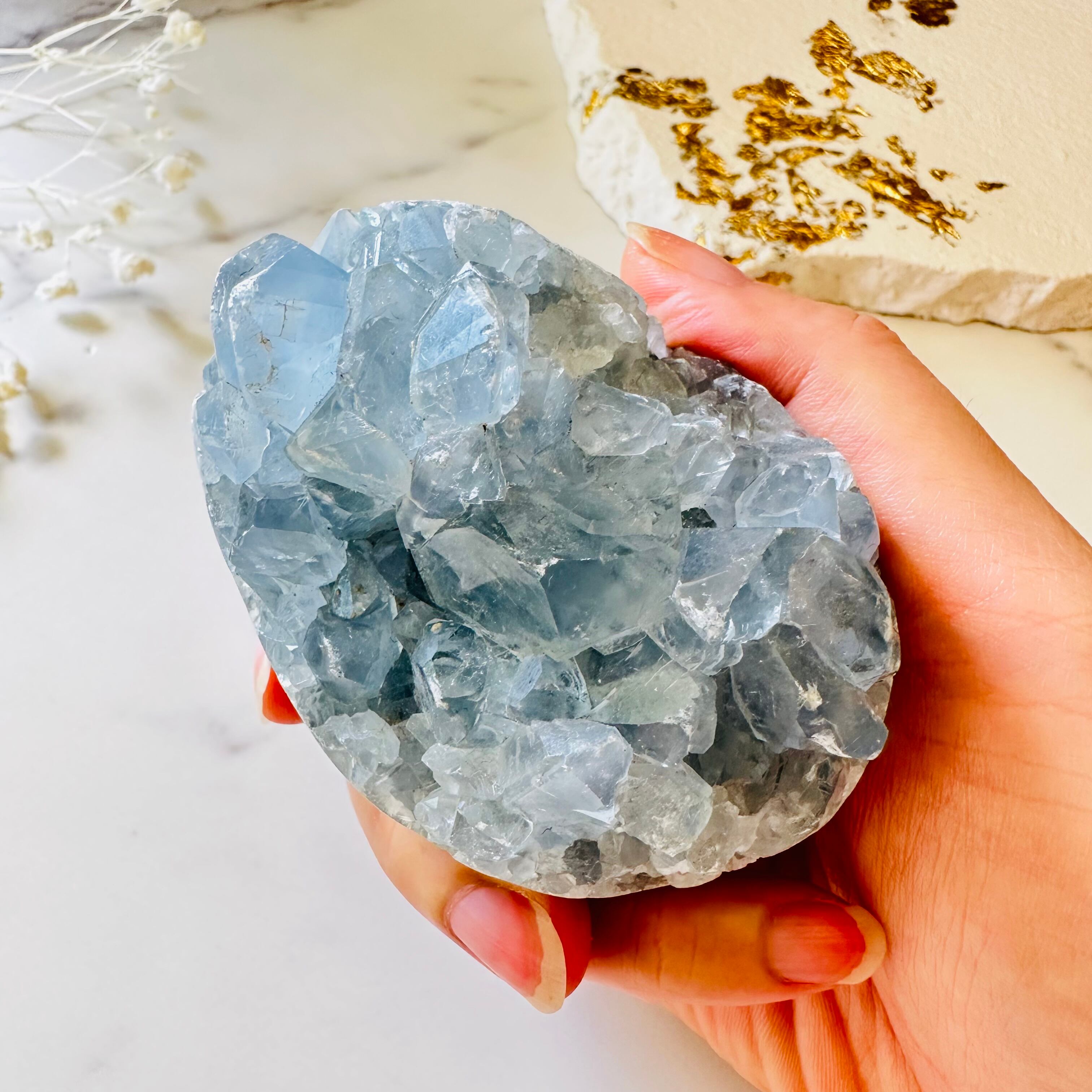 セレスタイトは硬度が低く、壊れやすいのでお取り扱いにはご注意ください。