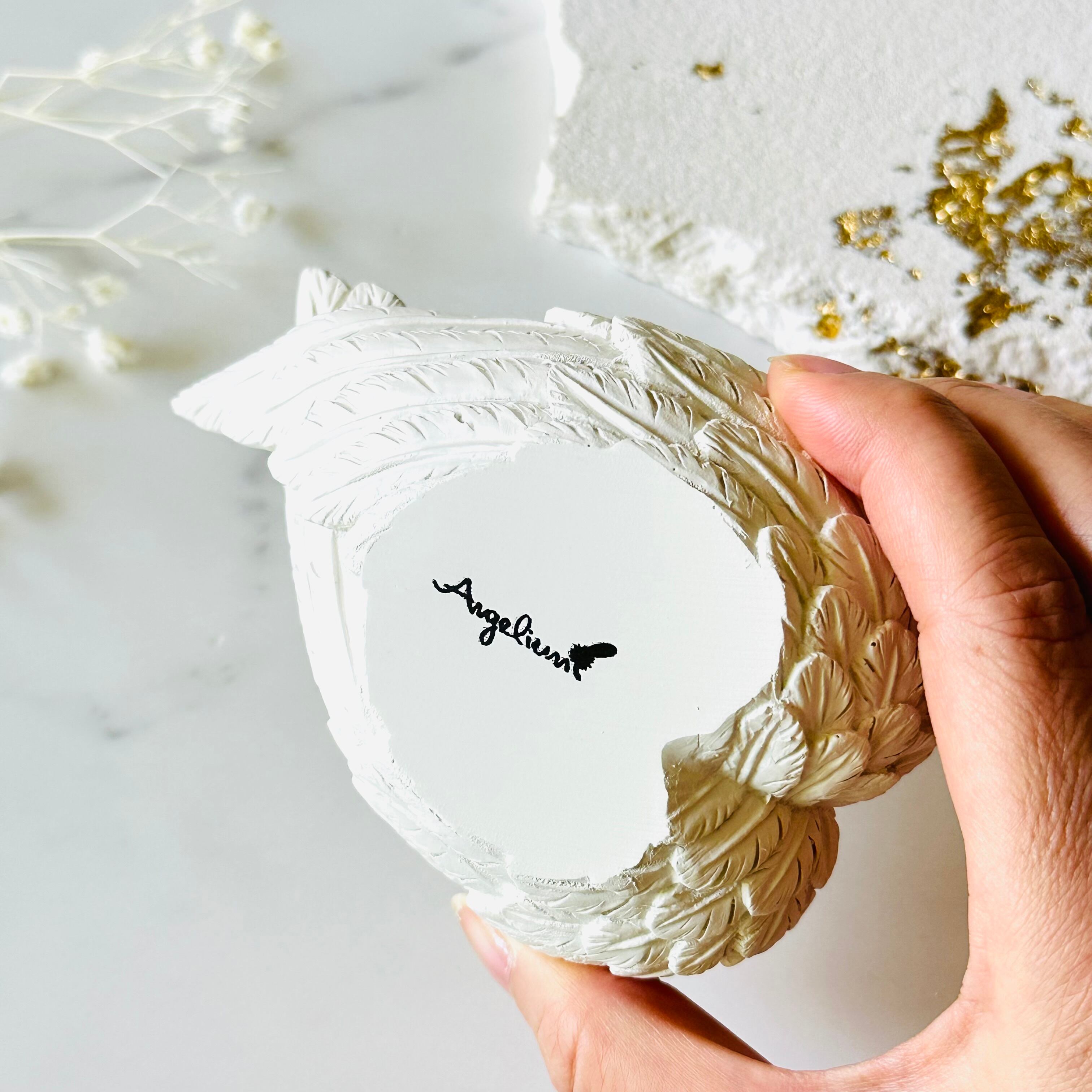 白い樹脂製の天使の羽ボウルです。