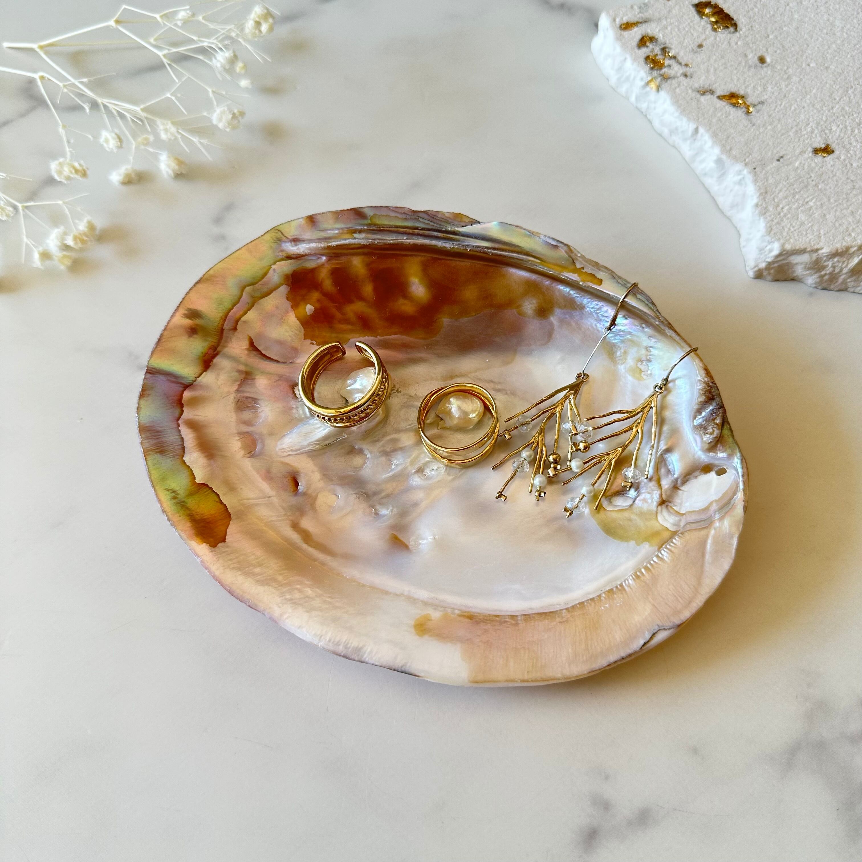 上品で美しいパールシェルはアクセサリーの浄化にぴったりのお洒落なアイテムです。パールの突起が2箇所ありますので、リングピローにもなります。お部屋のインテリアやちょっとした贈り物にどうぞ。