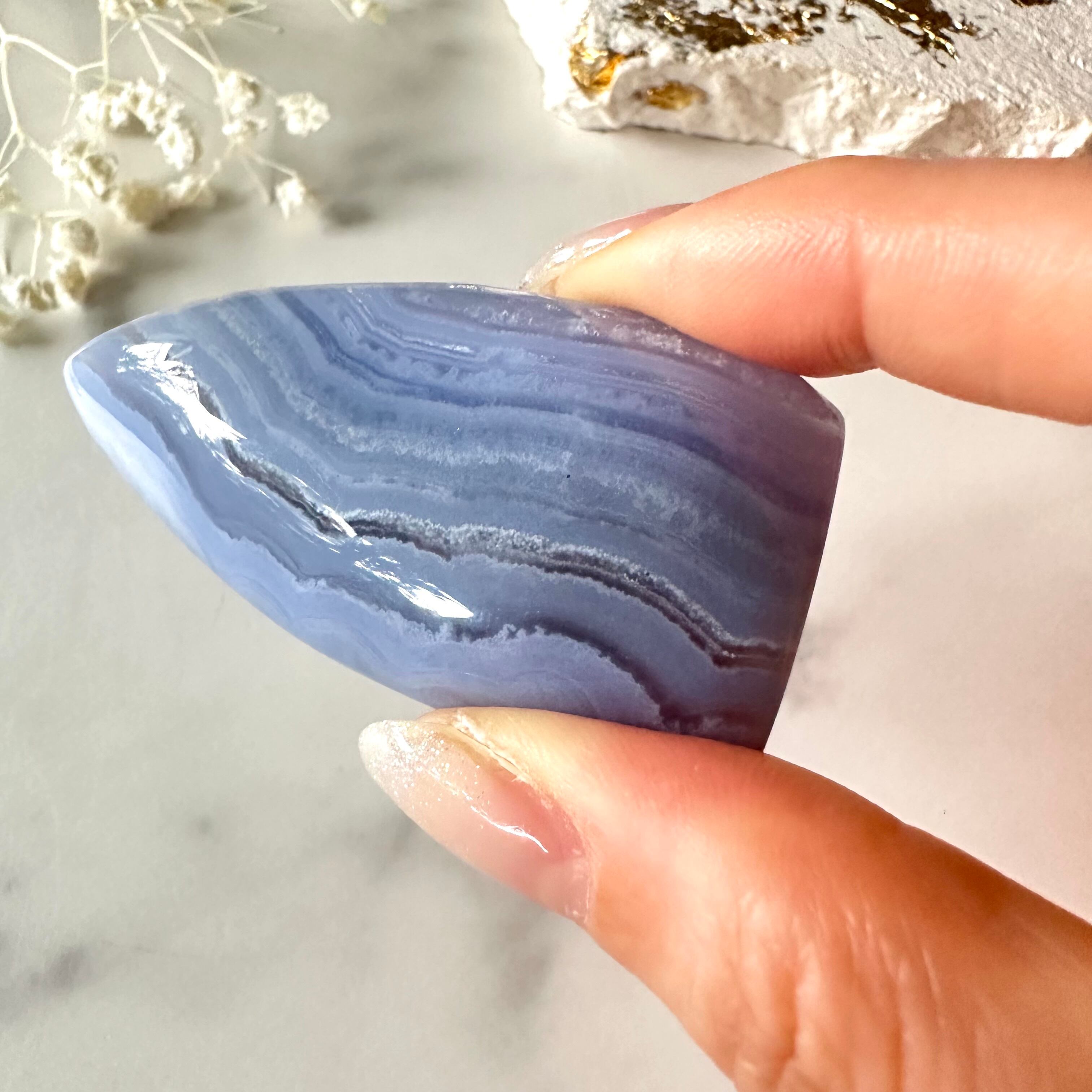 淡いサックスブルーが上品な印象のブルーレースアゲートのフリーフォームです。