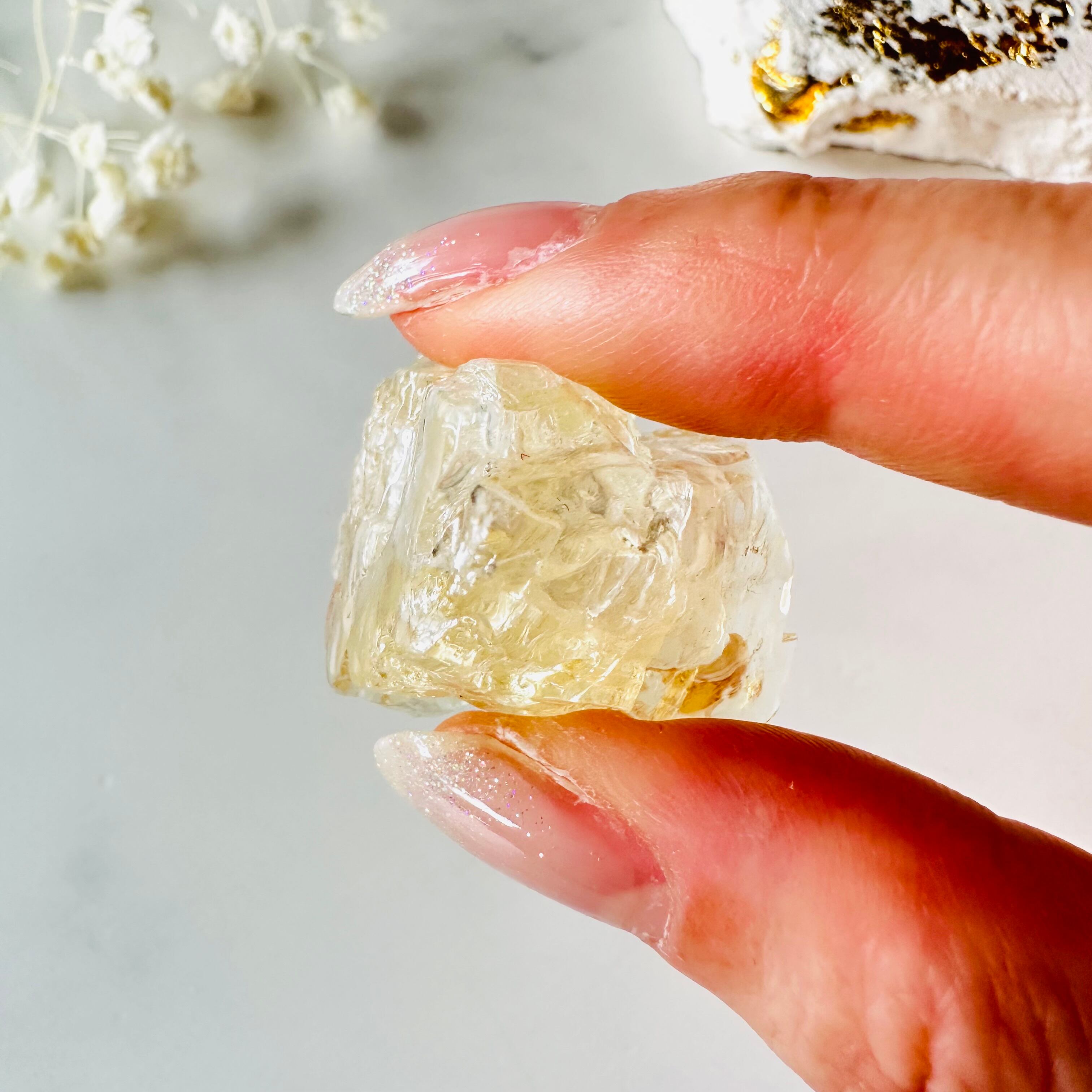 シャンパンゴールドカラーが美しいゴールデンカルサイトのラフカット。3点セットでお届けいたします。光にかざすとキラキラと輝きとても綺麗です。カルサイトの穏やかな波動は、優しく心身に寄り添いそっと癒しを与えてくれます。