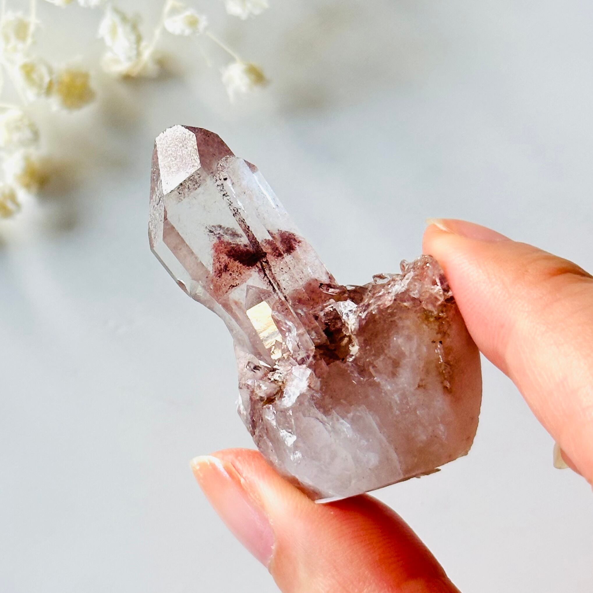 レッドファントムといえばザンビア産が有名ですが、閉山により供給が途絶え綺麗な個体の流通が途絶えましたので、今回はインドより取り寄せました。透明度の高いクォーツが魅力です。