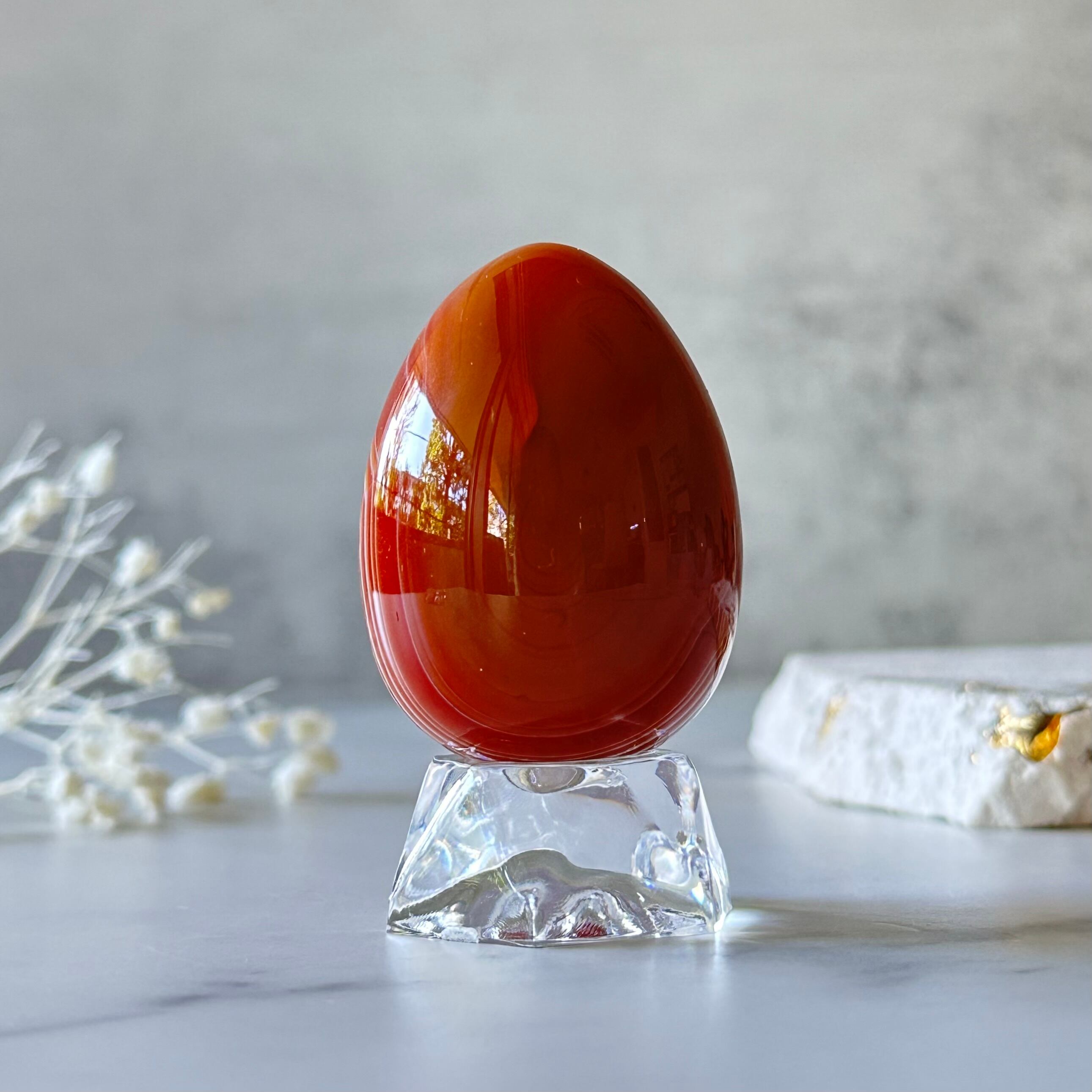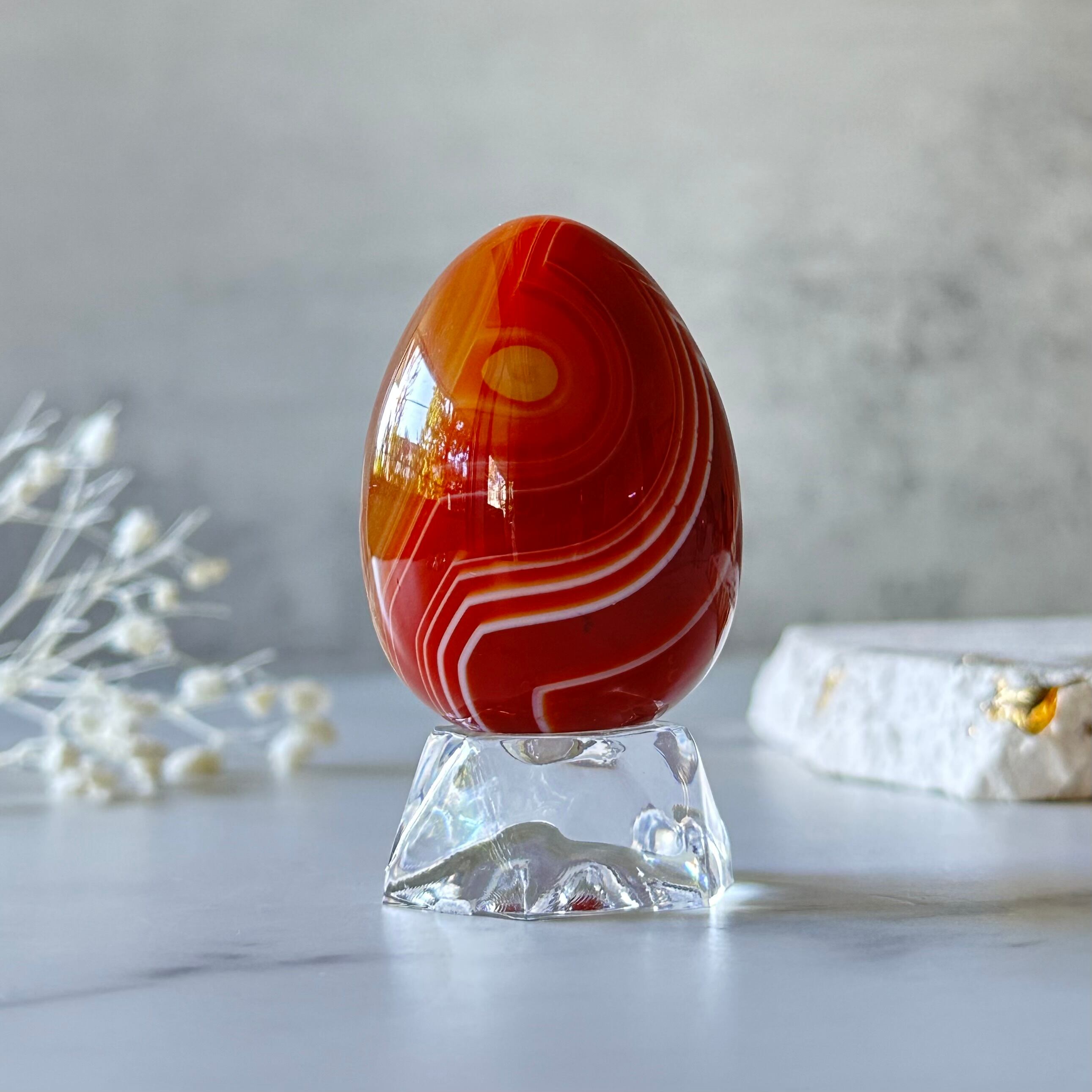 幾重にも重なる模様が綺麗なオレンジ色のカーネリアンのエッグ型ストーンです。