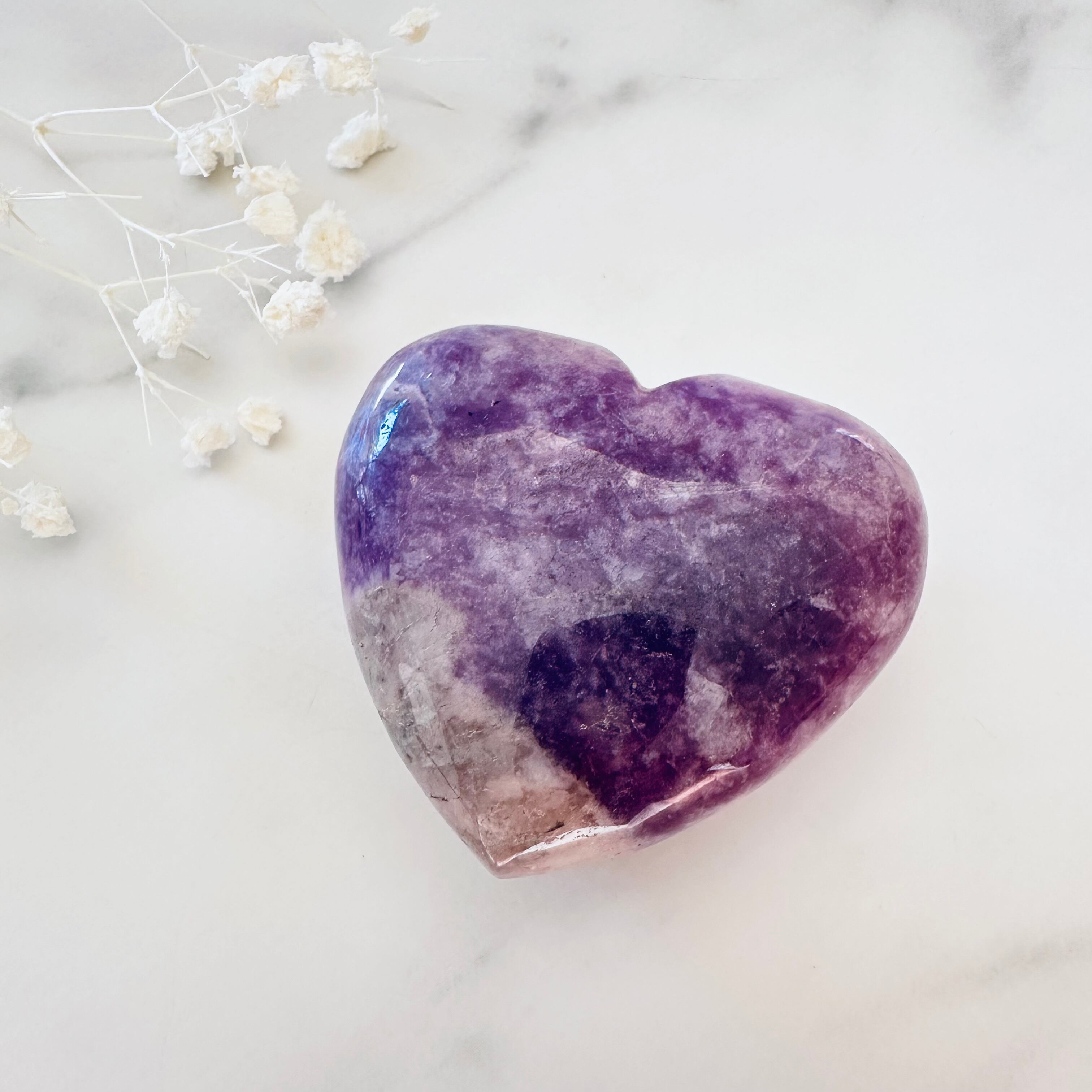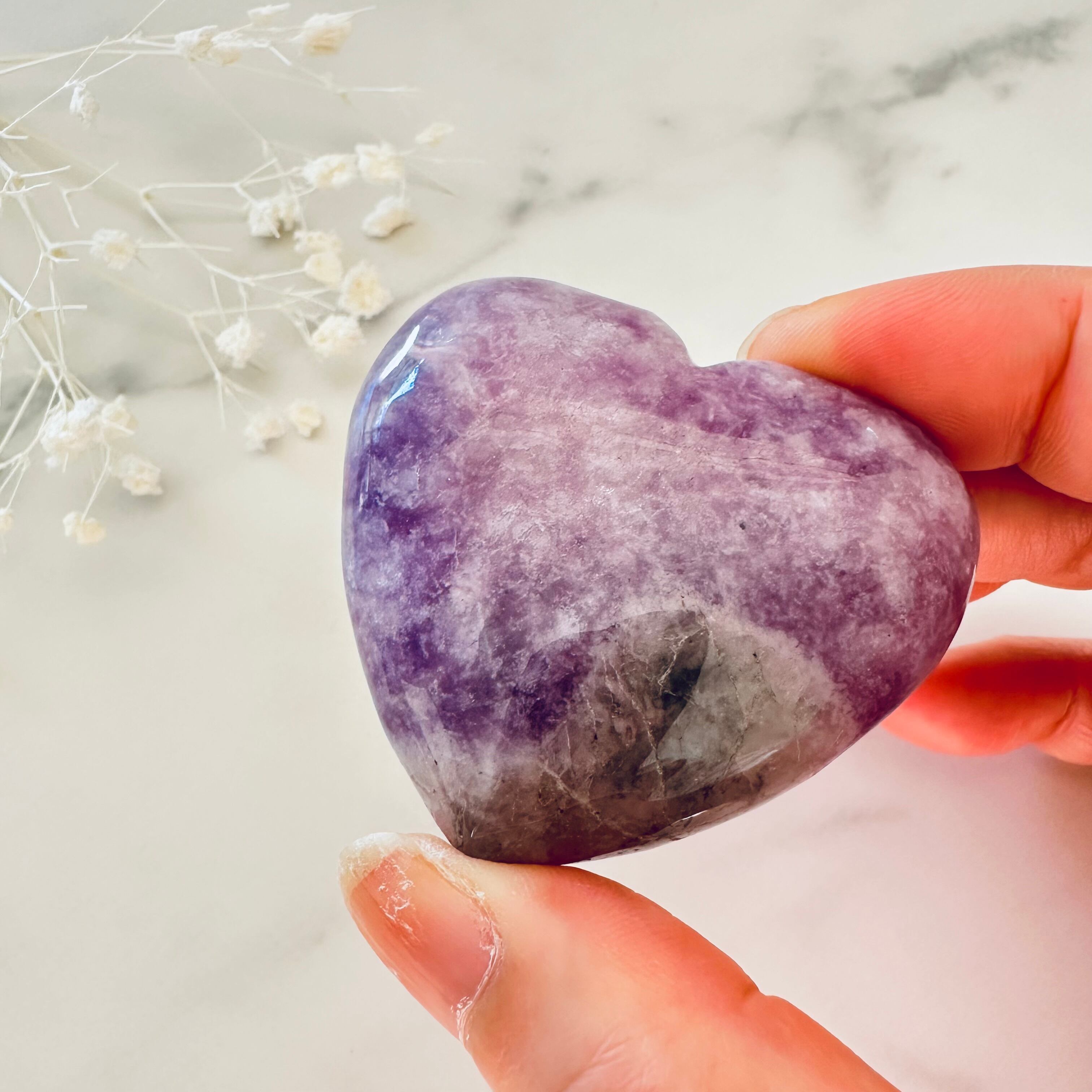 柔らかいラベンダーカラーが綺麗なレピドライトのハート型ストーンです。
