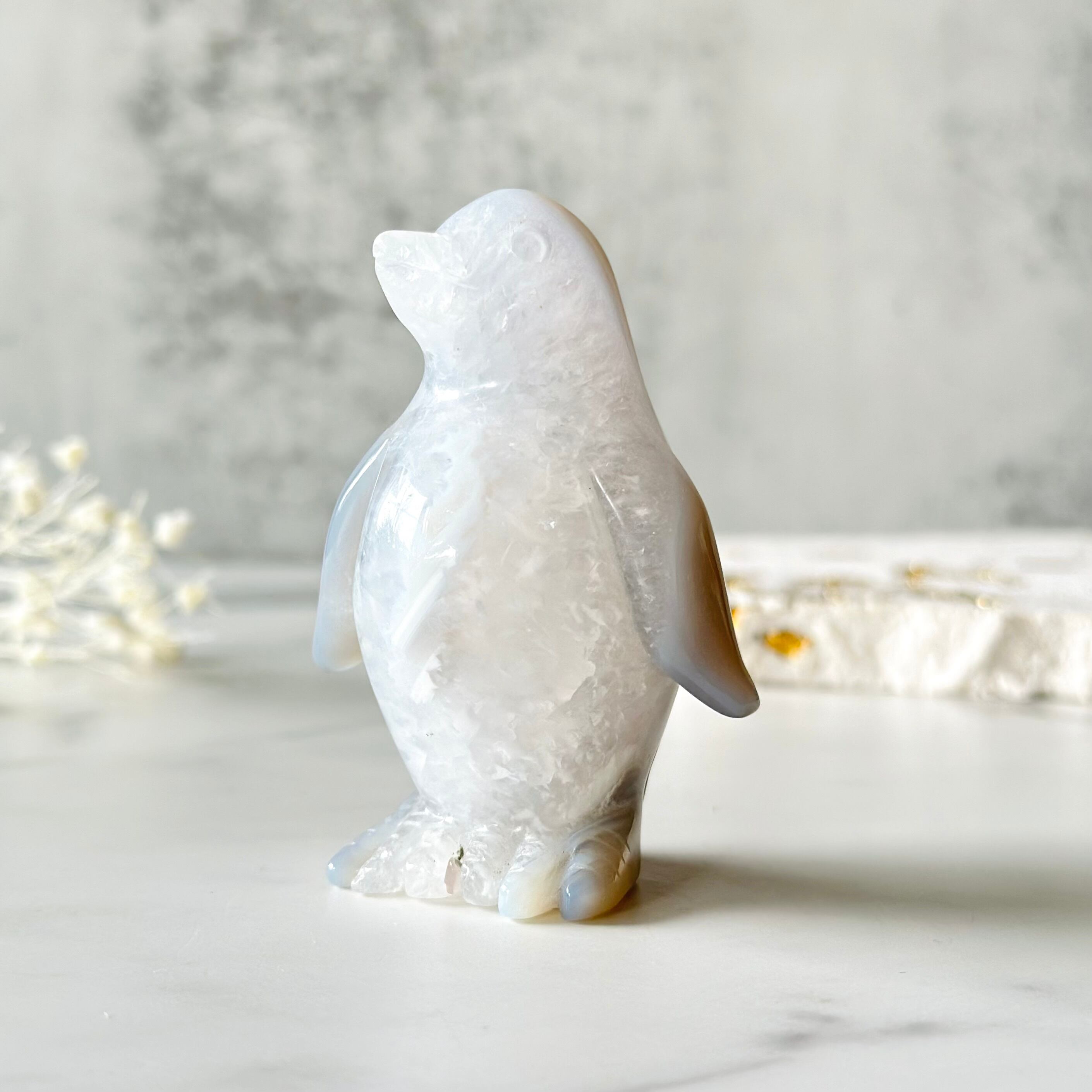 お顔から、ぷっくり膨らんだお腹、足元まで前半身全体まで内部の結晶が透けて見えます。優しいグレーが上品で癒し系のペンギンさん。玄関の鍵入れのあたりに置くと、帰宅した時にちょっとホッとできそうなアイテムです。