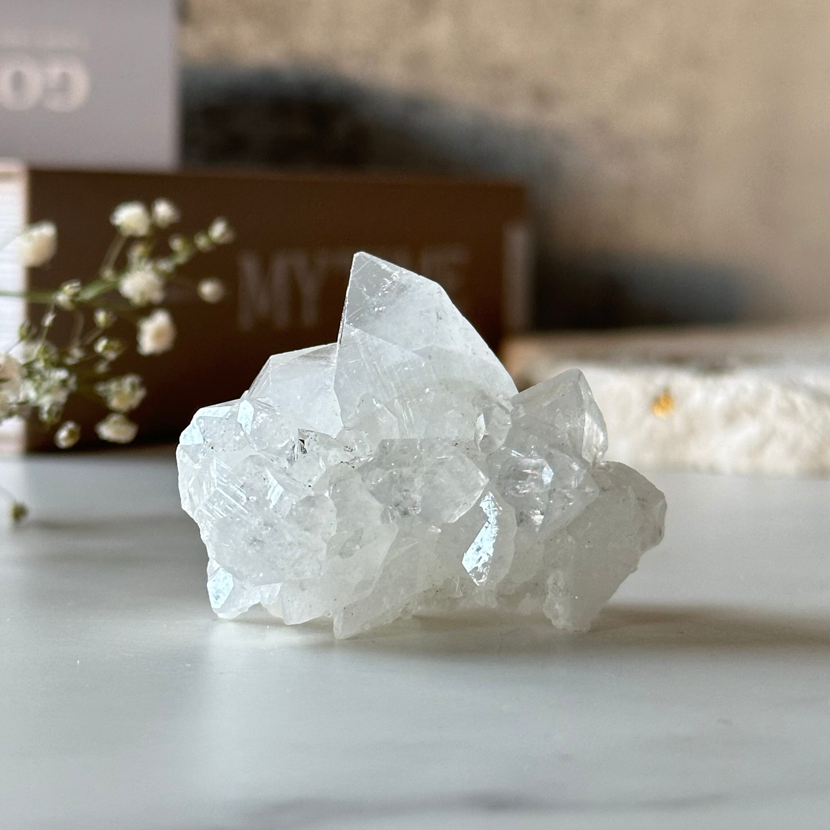 インド産高品質のアポフィライト クラスター。ダイヤモンドを幾つも集めたような清らかで強い光を放ちます。角度によってさまざまな表情をみせてくれます。