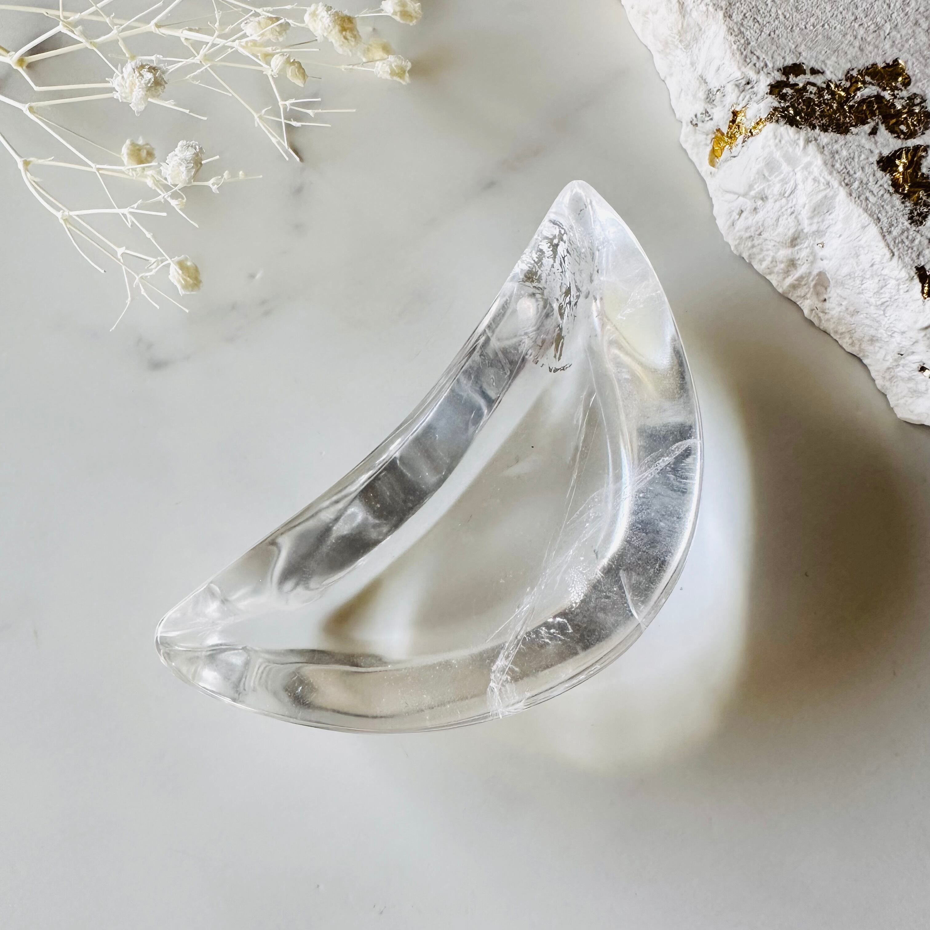 透き通った水晶が光を通してとてもキレイです。水晶と月の組み合わせの相乗効果で強力な浄化パワーを発揮します。お気に入りのアクセサリーを置けば寝ている間にマイナスのエネルギーを浄化して次の朝にはクリアな状態でまたお使いいただけます。