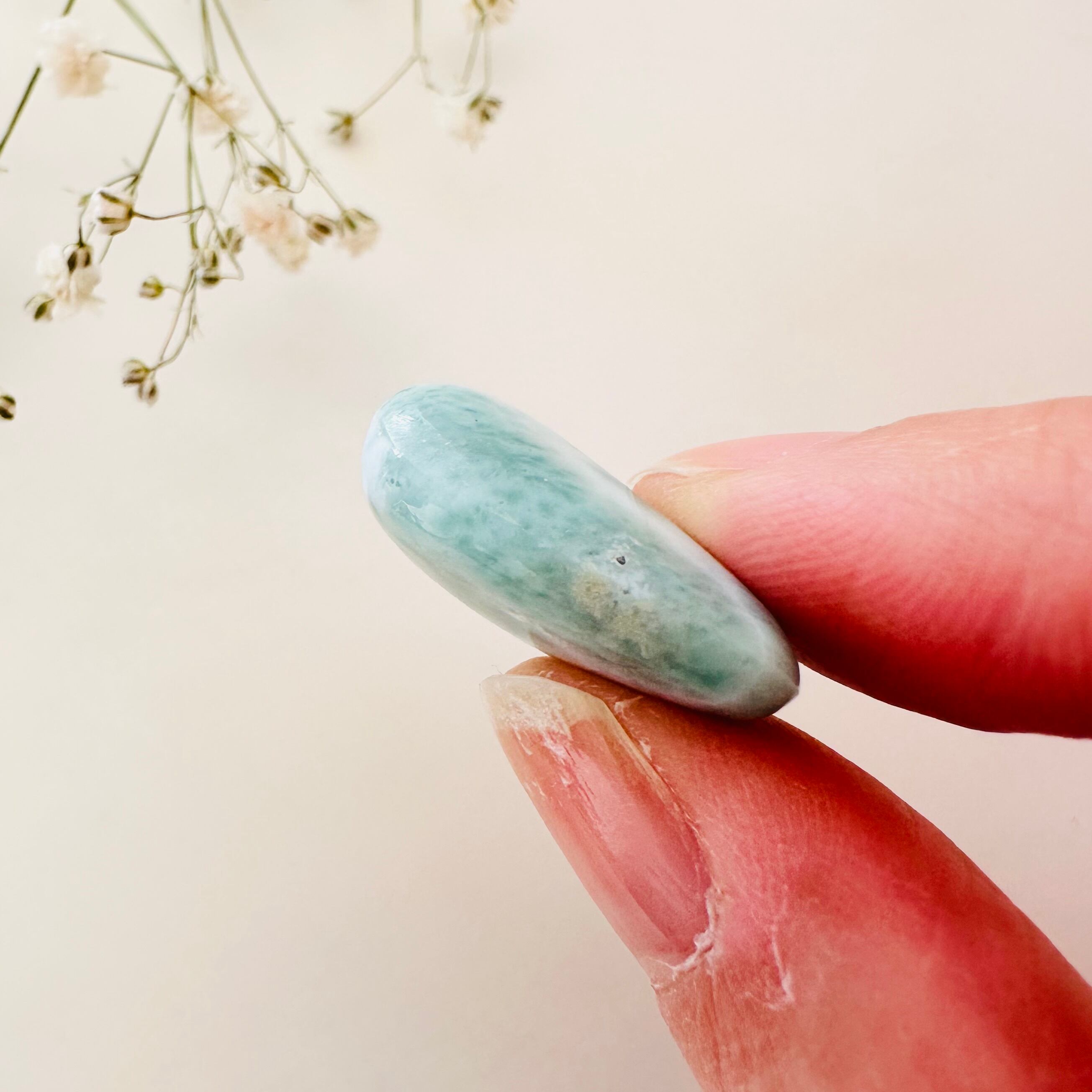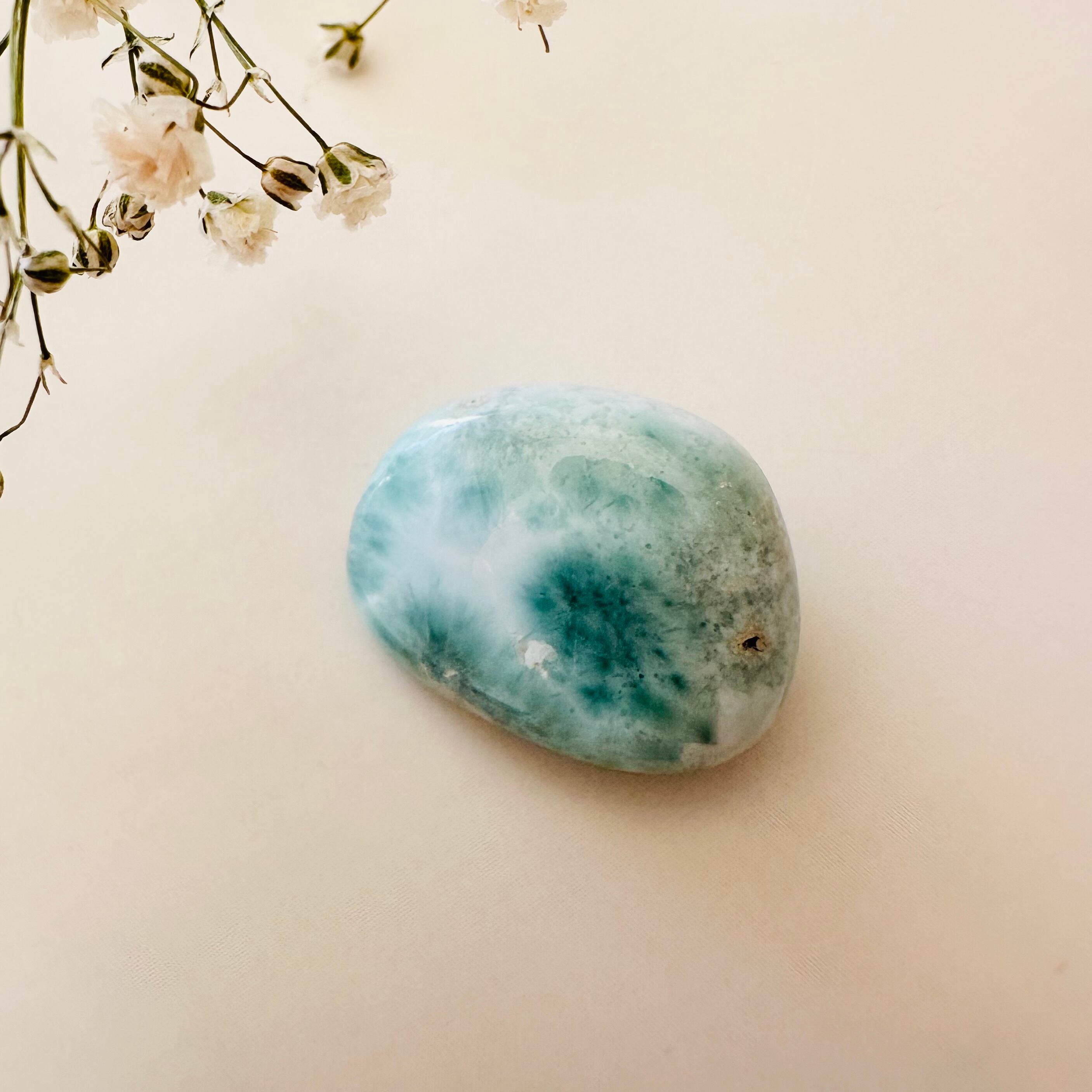 ドミニカ共和国産ラリマーのタンブルです。