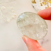 高貴な美しさを持つプラシオライトは、持ち主の存在感を高め、成熟した女性の美しいオーラを最大限に引き出します。小さく美しいカットを施されたルースなどの形で見かけることが多く、パームストーンはあまり流通していないように思います。アレルギーなどでジュエリーをつけられない方にも、しっかり触れてオーラを引き出したい方にもおすすめのアイテムです。