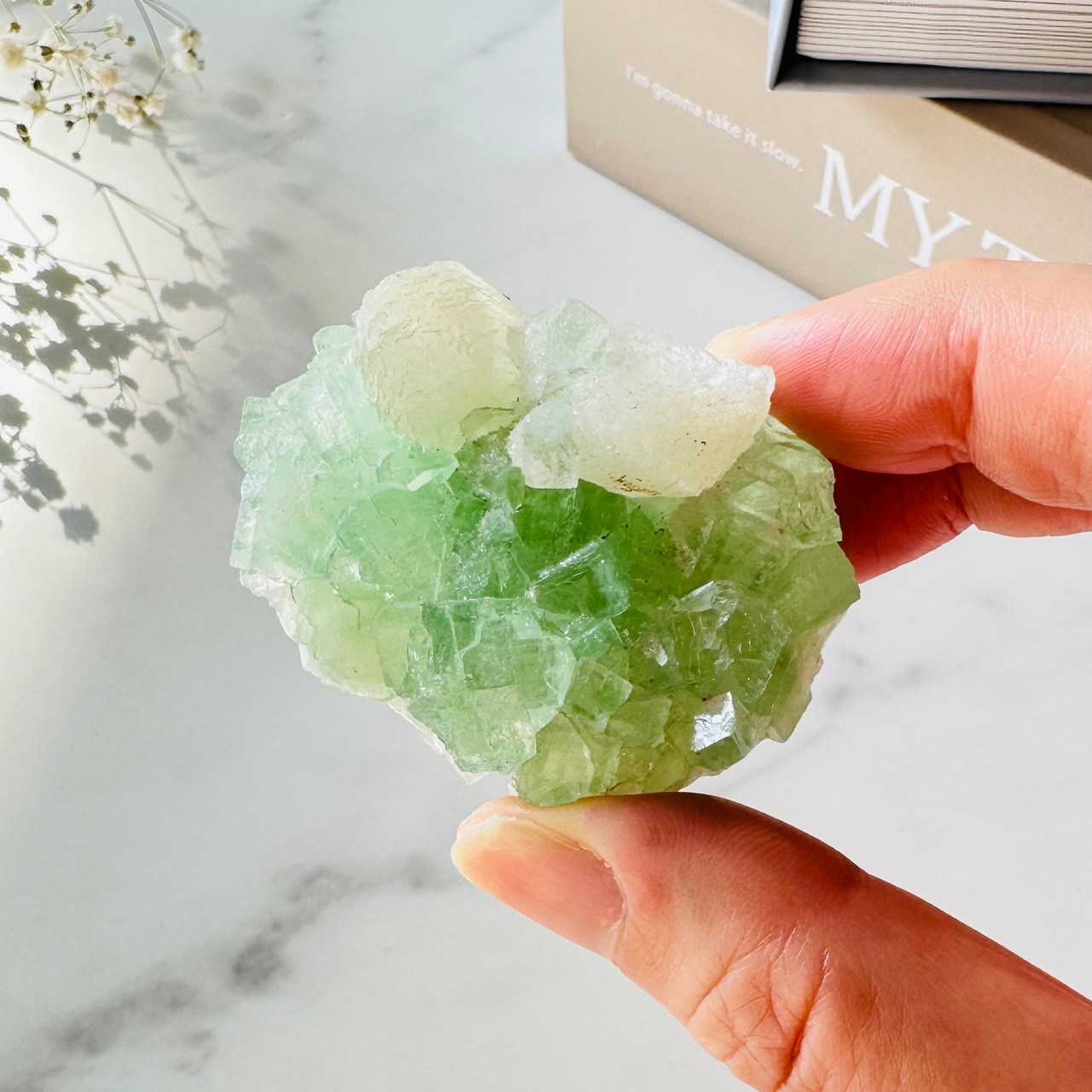 グリーンアポフィライトは強いヒーリング効果を持っていると言われており、忙しい毎日の中で本来の自分の状態を取り戻すのにとても役立つと言われ、瞑想などにもオススメの石です。