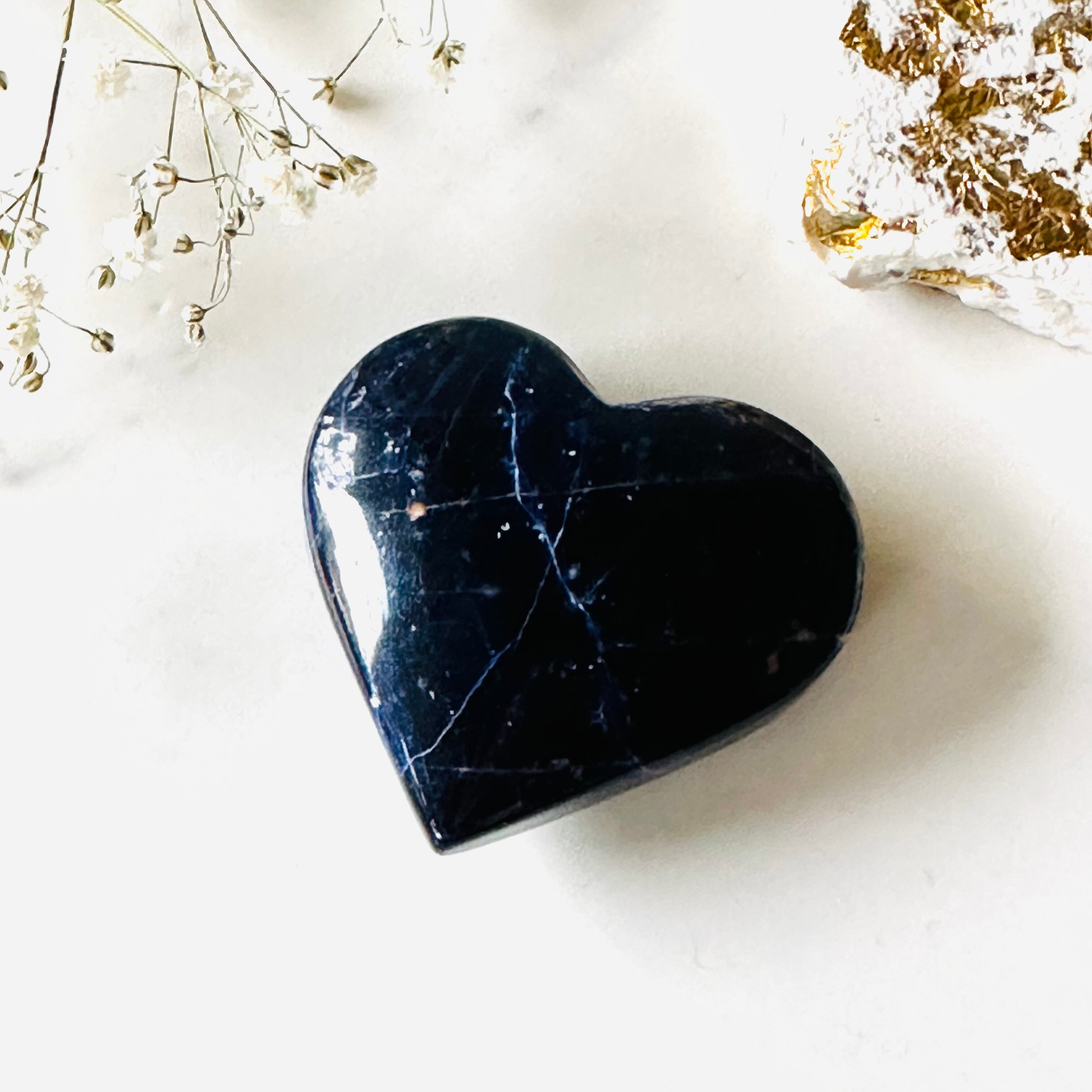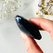 深いブルーのソーダライトは宇宙や夜空を思わせます。流れるようなラインは、まるで流れ星の残像のようです。思慮深く神秘的な佇まいで、自己と深く繋がりたい時、内なる自己の声を聞きたい時にそばにおくと良いでしょう。瞑想をされる方、ハイヤーセルフと繋がりたい方にお勧めします。