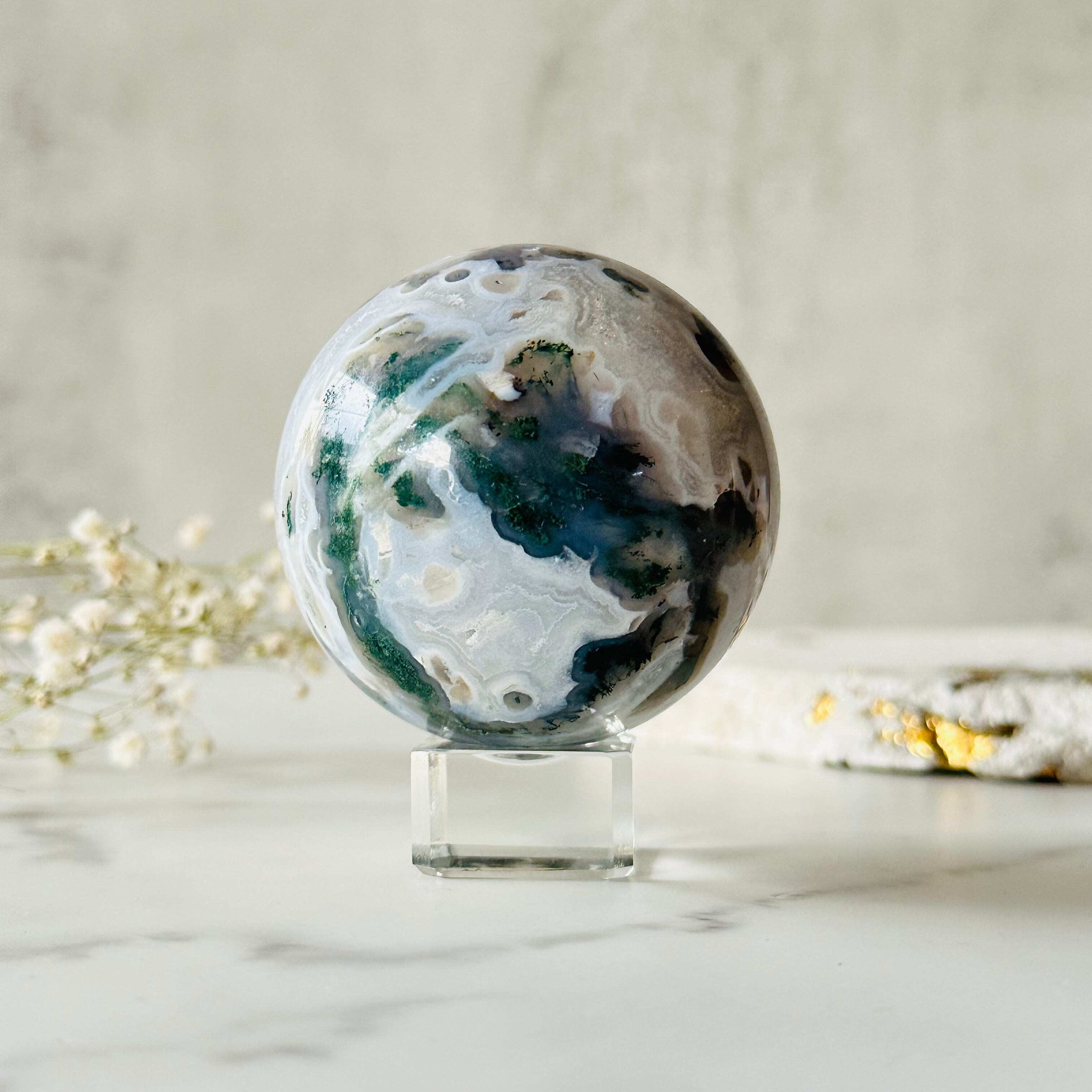 モスアゲートは、癒しの石として知られています。感情の乱れを整え、エゴや執着を解き放ち、心身を安定した状態に保ち、生活に疲れた人に平和で穏やかなパワーをもたらしてくれます。森林浴と同じ効果があると言われており、持ち主に自然の恵みを与え、富と繁栄をもたらすパワーストーンです。