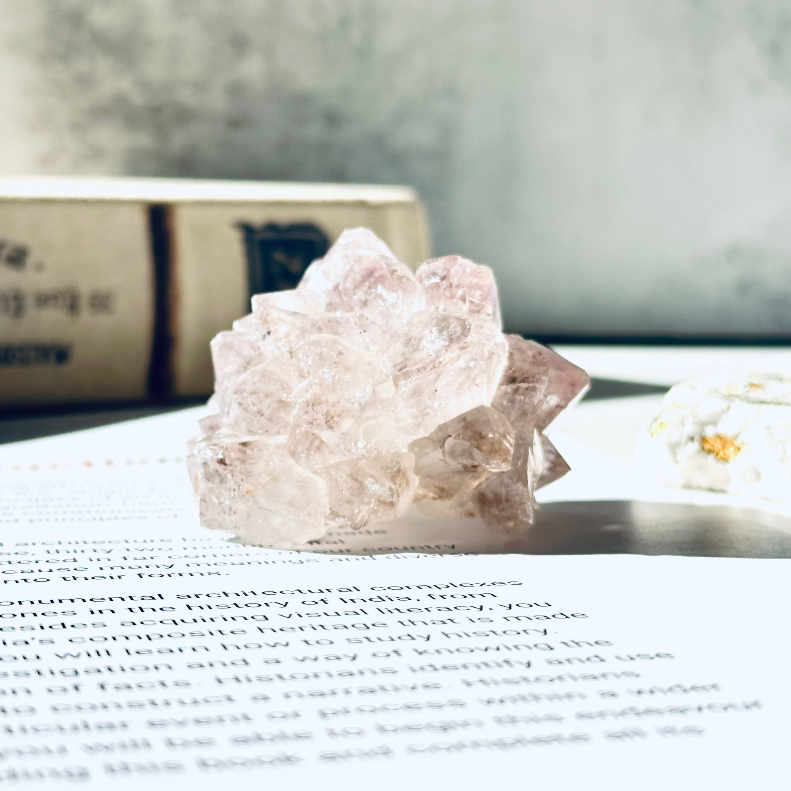 お花のような形と優しい色合いが可愛らしいフラワーアメジストです。