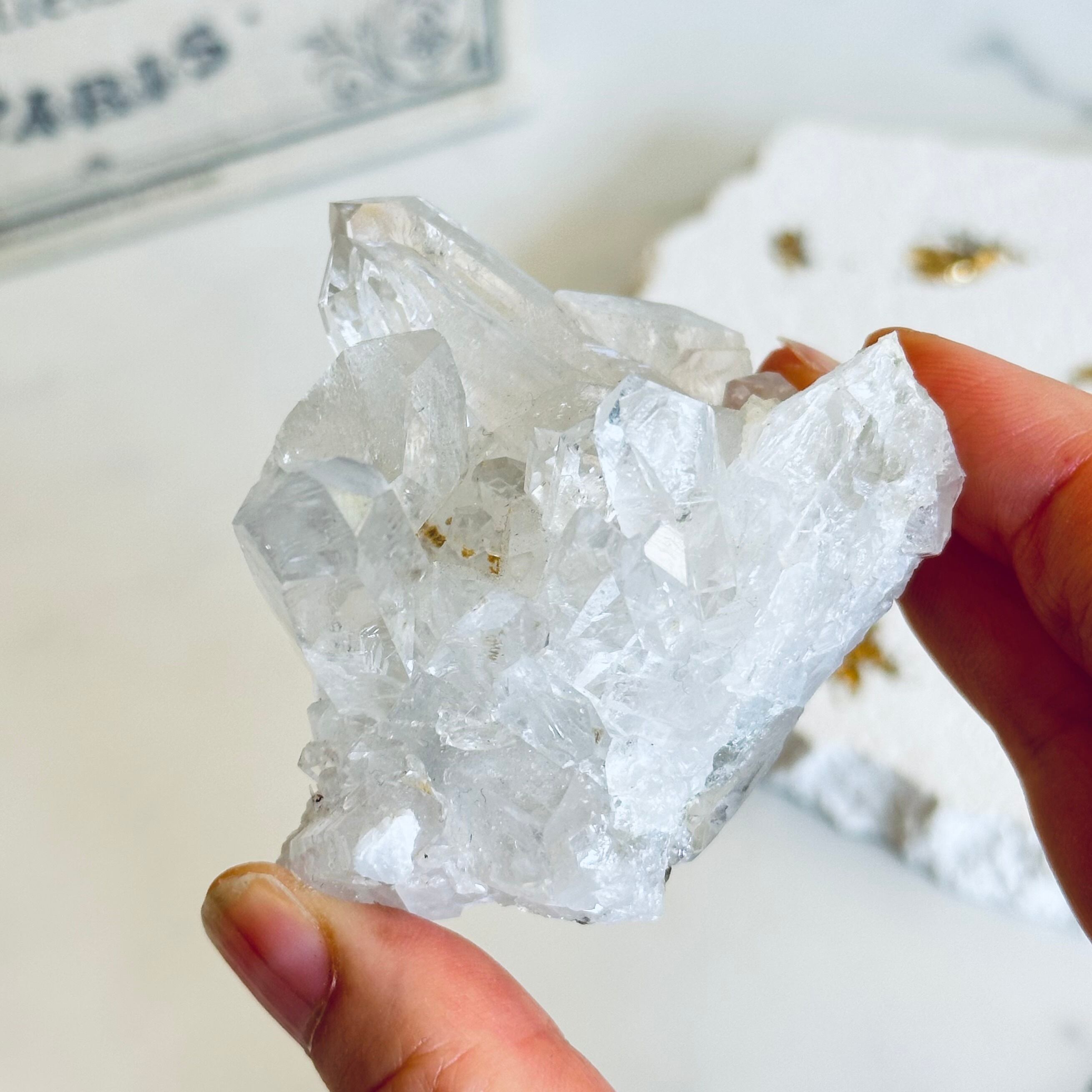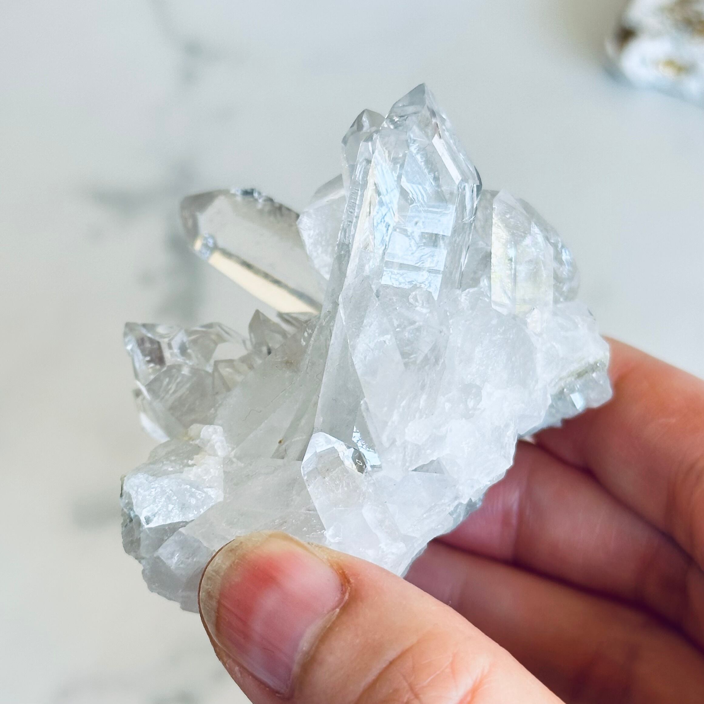 その結晶は氷のように清らかに澄んでみずみずしく、抜群の透明感を誇ります。コリント産の水晶は、ブラジルのトマスゴンサガ産水晶やアメリカのアーカンソー産水晶と並んで、世界で最も美しい水晶のひとつとしてその名を知られています。