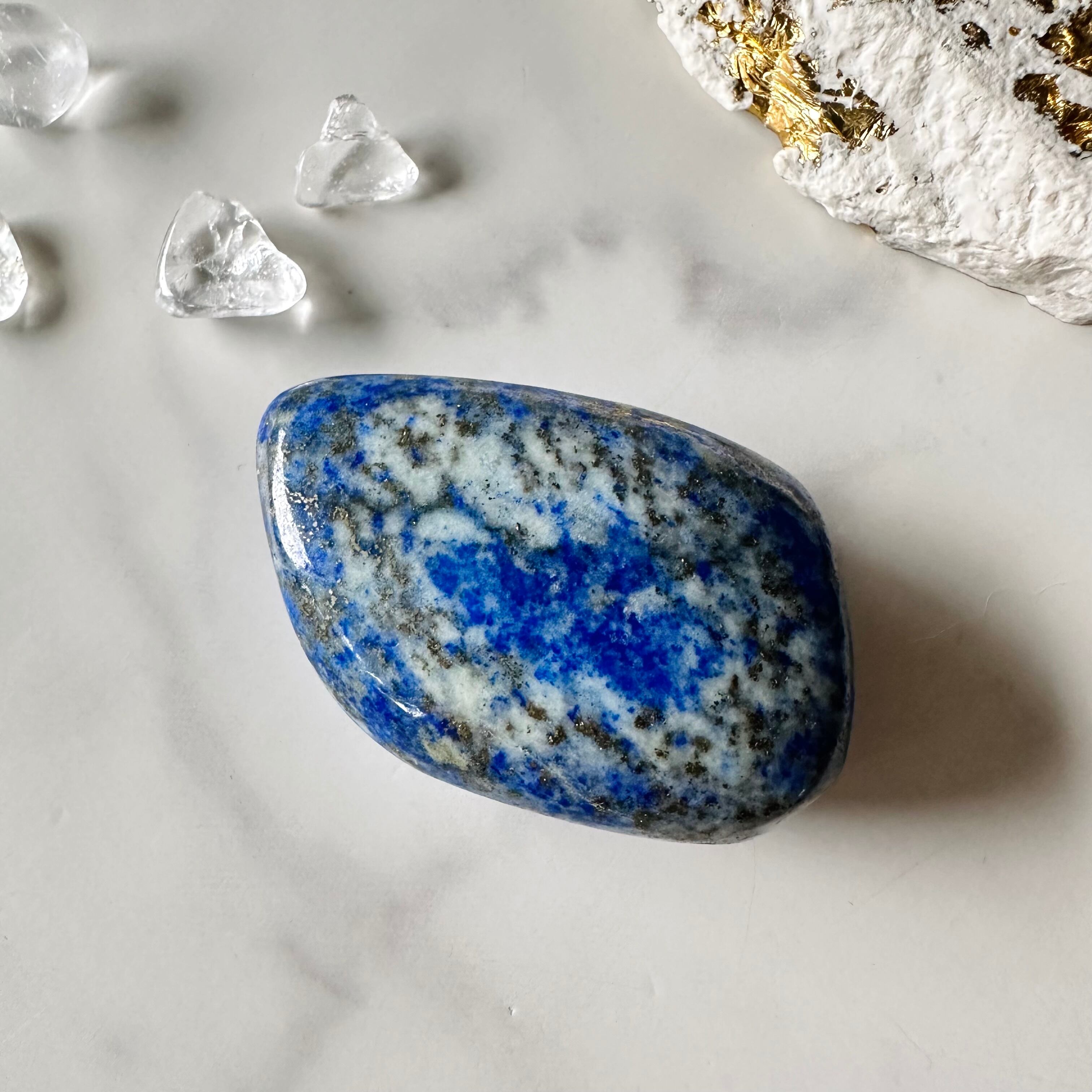 明るめのラピスブルーにパイライトが美しい模様を描き出します。