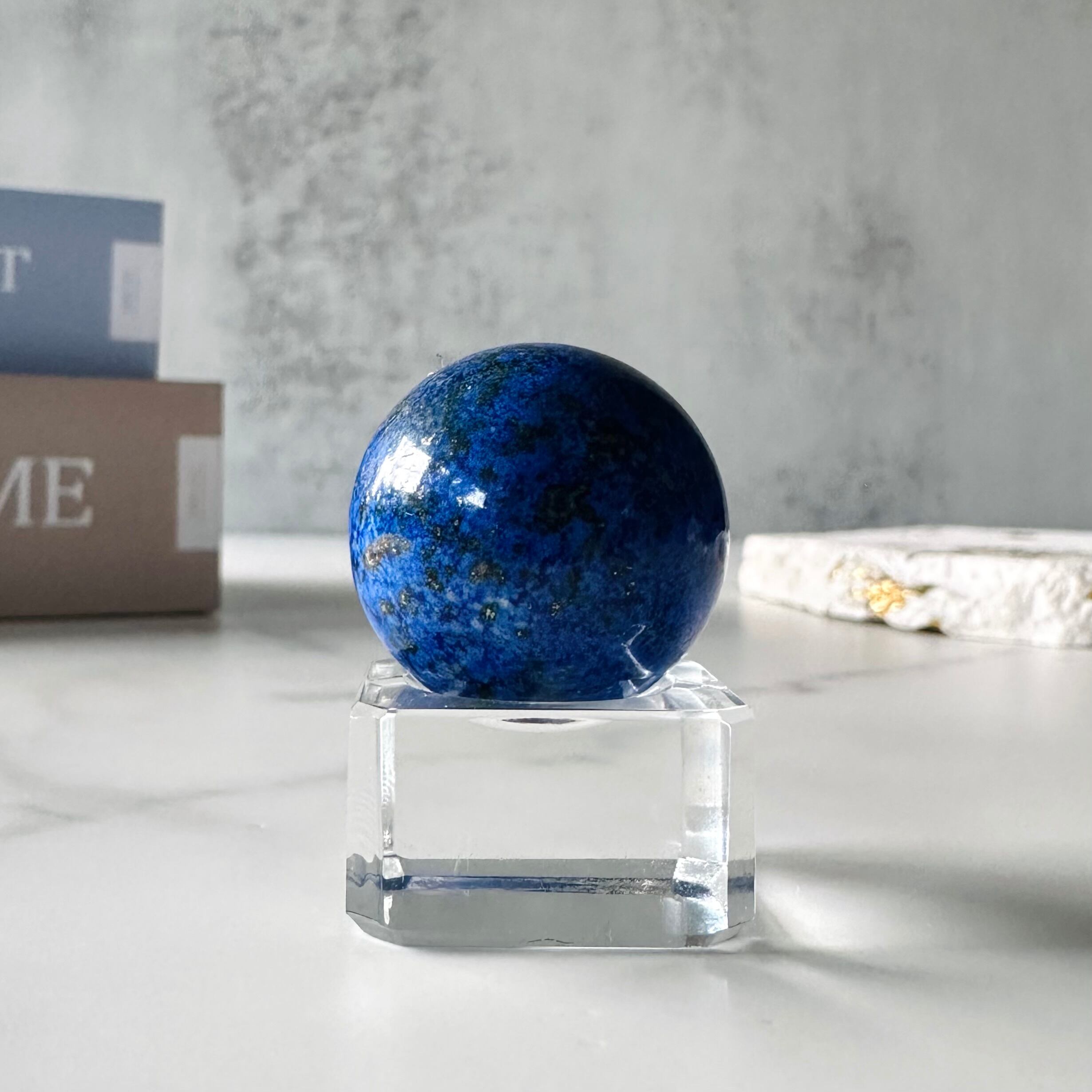 夜空や地球を思わせるラピスラズリのスフィアです。