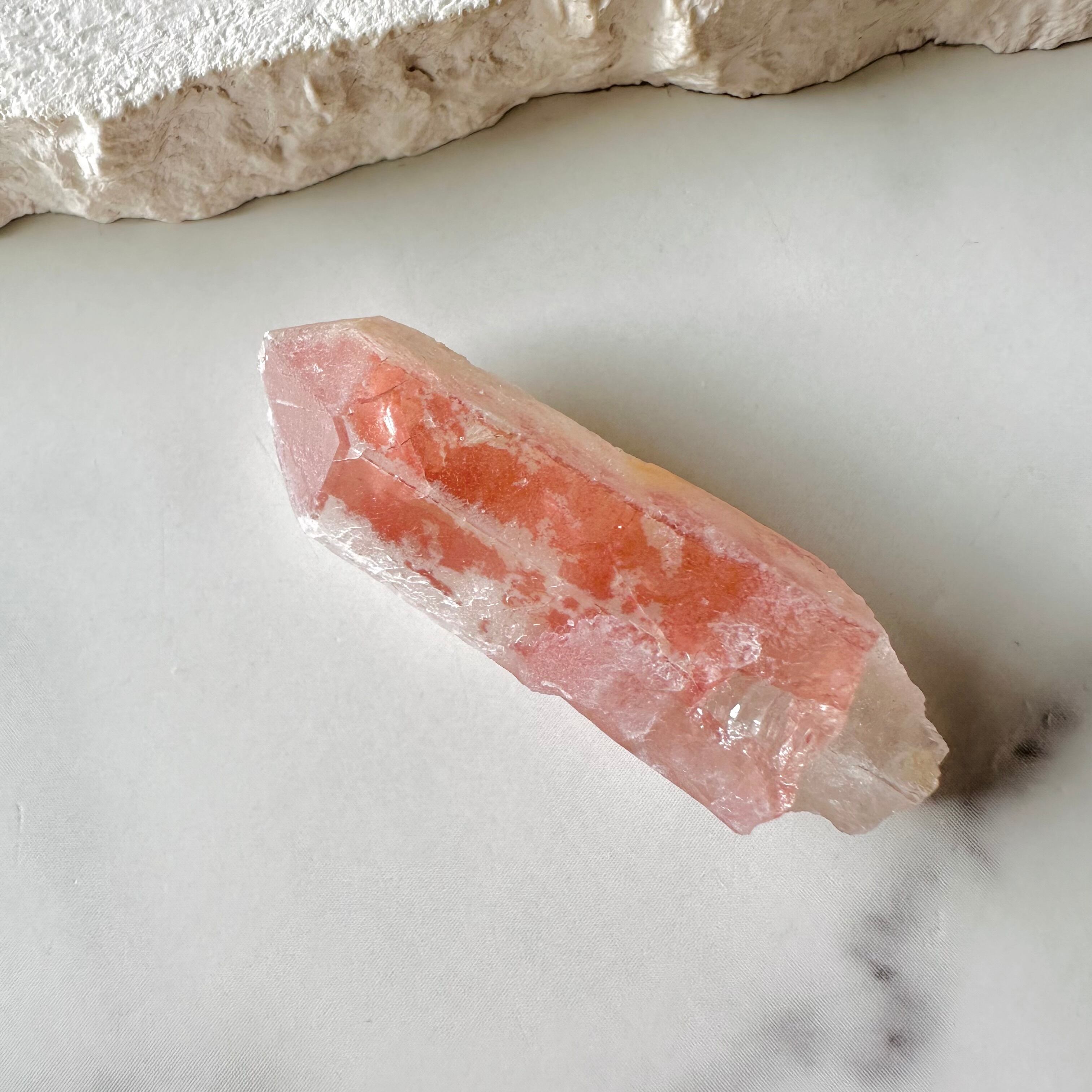 ピンクレムリアンは鉄分が付着しピンク色に変化したもので、数億万年前に伝説のレムリア大陸で高度な文明を築いたとされるレムリア民族が現代人にメッセージを残し伝えるクリスタルだといわれています。綺麗なピンクの色合いは、レムリアンの強く静謐な波動に加えて、女性らしい優しさと愛情豊かなエネルギーに溢れています。