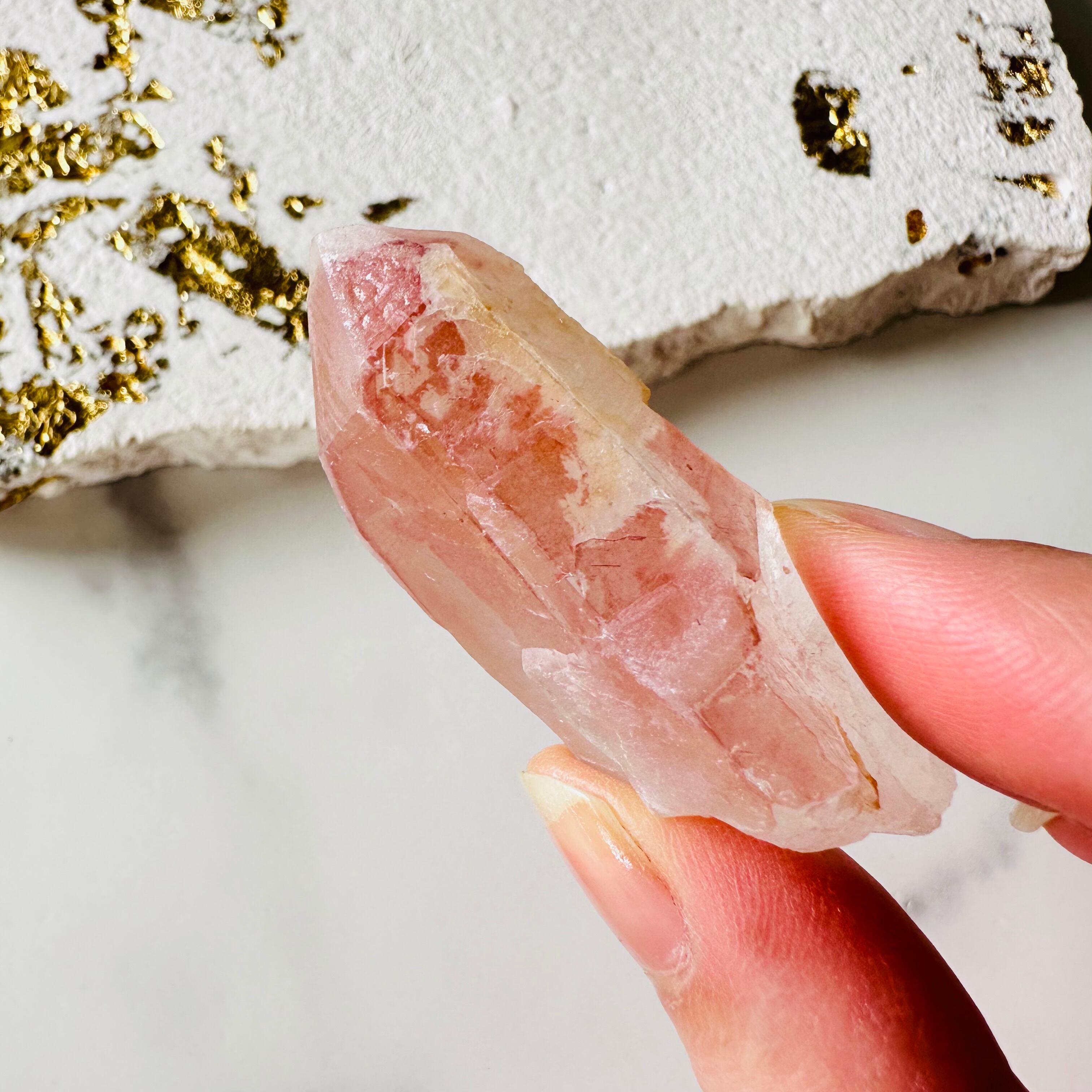 ブラジルのミナスジェライス産のピンクレムリアンです。先端に向かってしっかりと濃くピンクに色づき、すべての女性が持つ美しさ、魅力を引き出してくれるアイテムです。