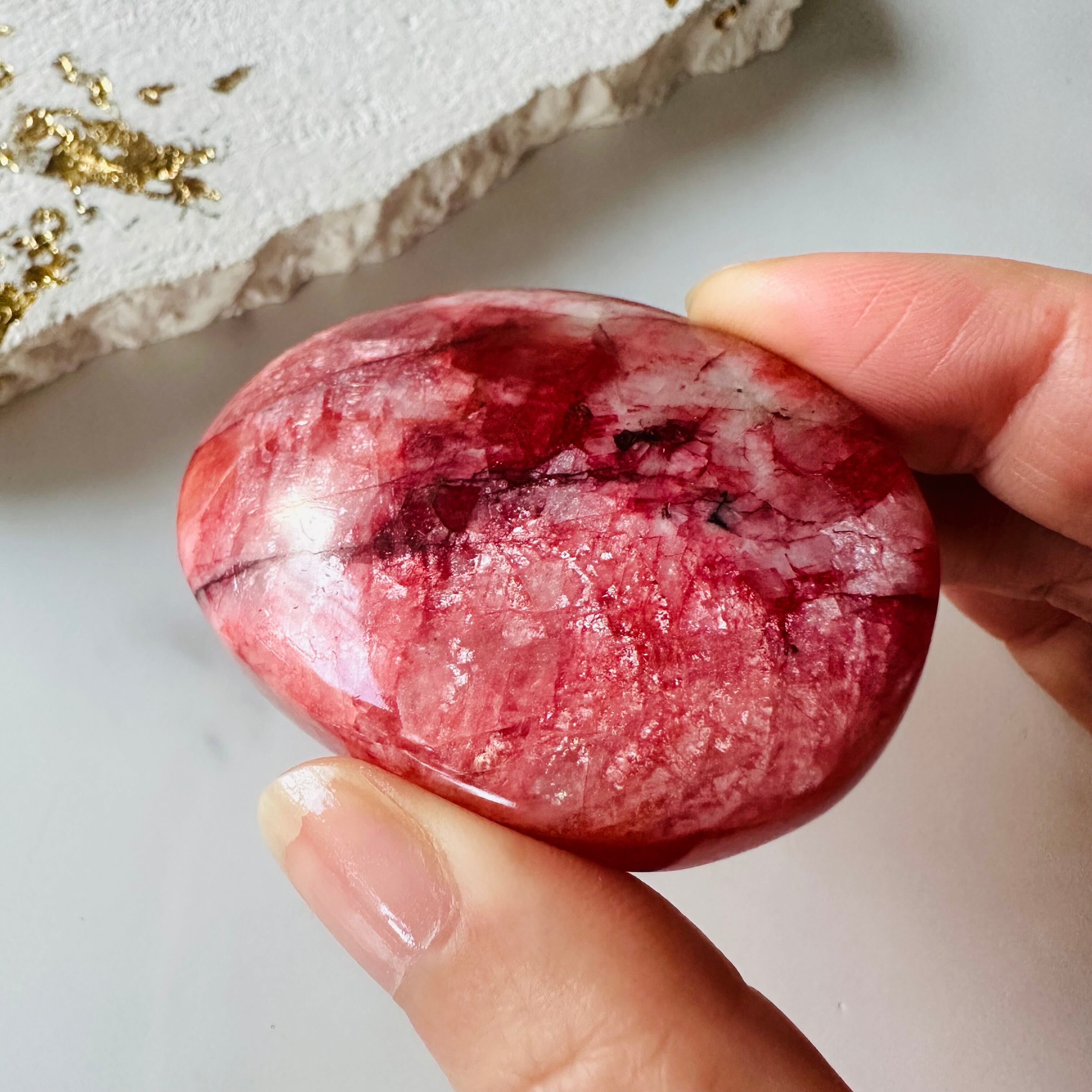 上品なシラーが美しい幻想的なレッドムーンストーンのパームです。
