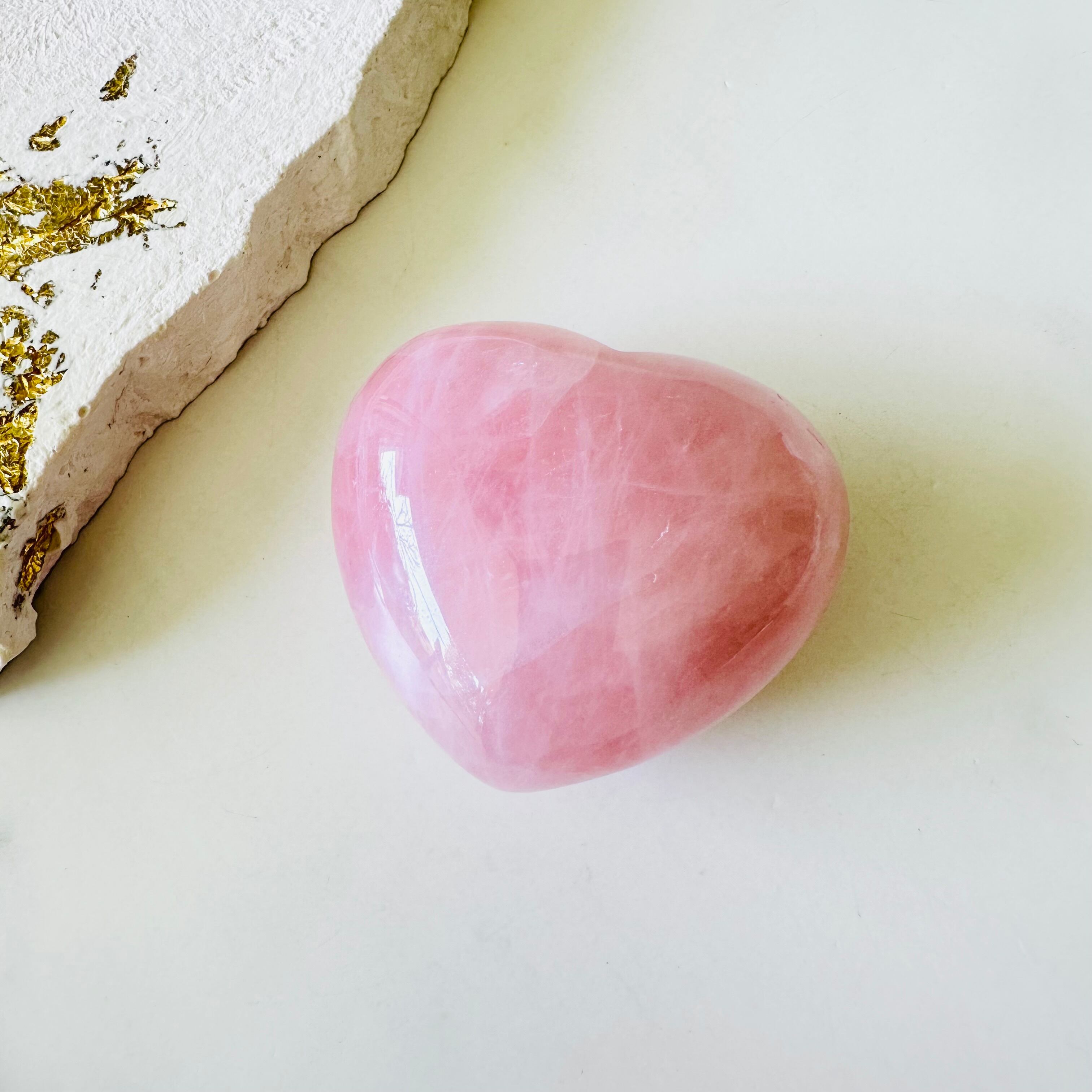 ふっくらとしたハート形はつやつやとした濃いピンク色です。自然の白い模様が入り、優しく可愛らしい石です。