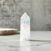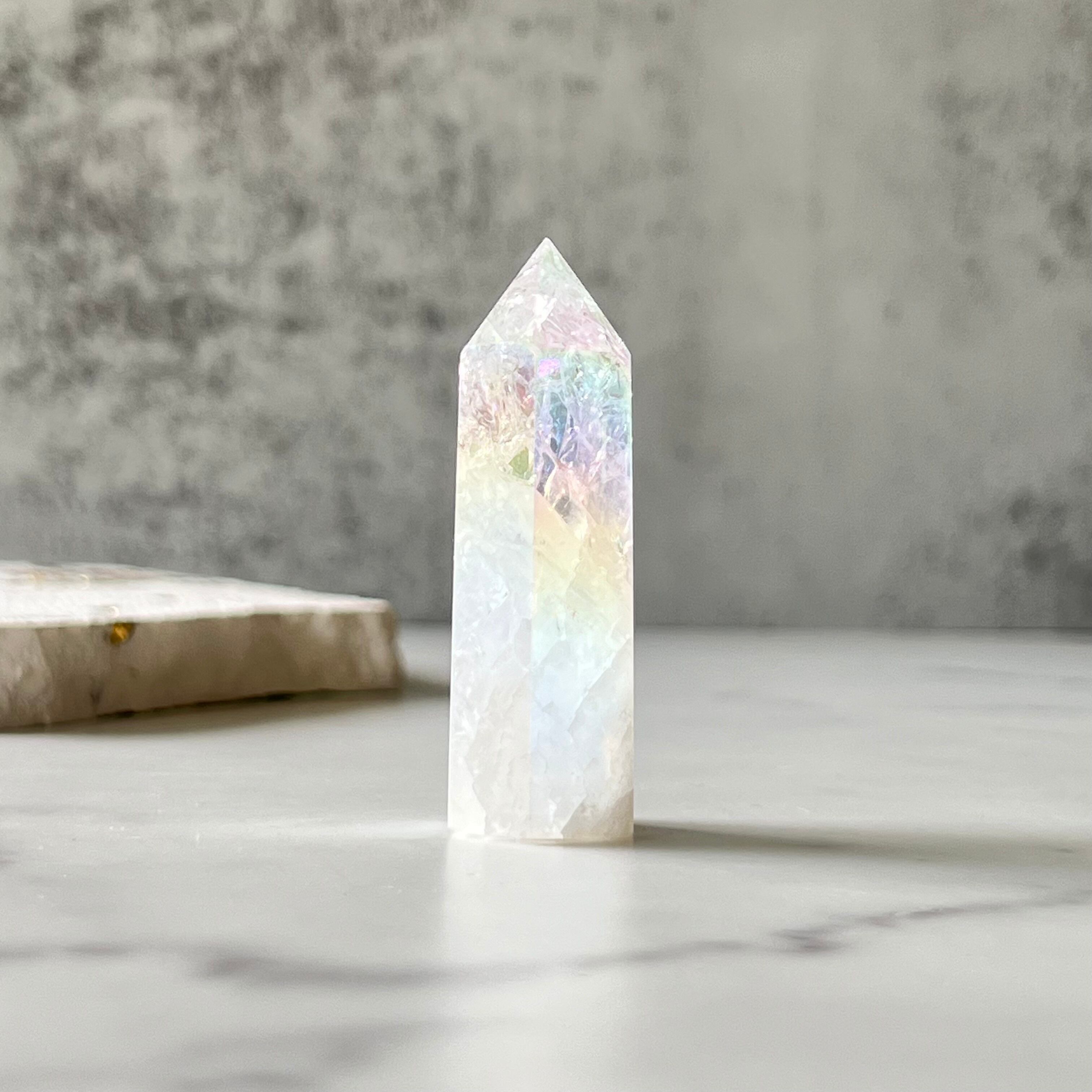 オーロラ水晶、またはレインボー水晶とも呼ばれるこの石は、天然水晶の表面に人工的な処理を加えて、虹のように七色の光を放つ神秘的な魅力のある石で、その美しい輝きが人気です。