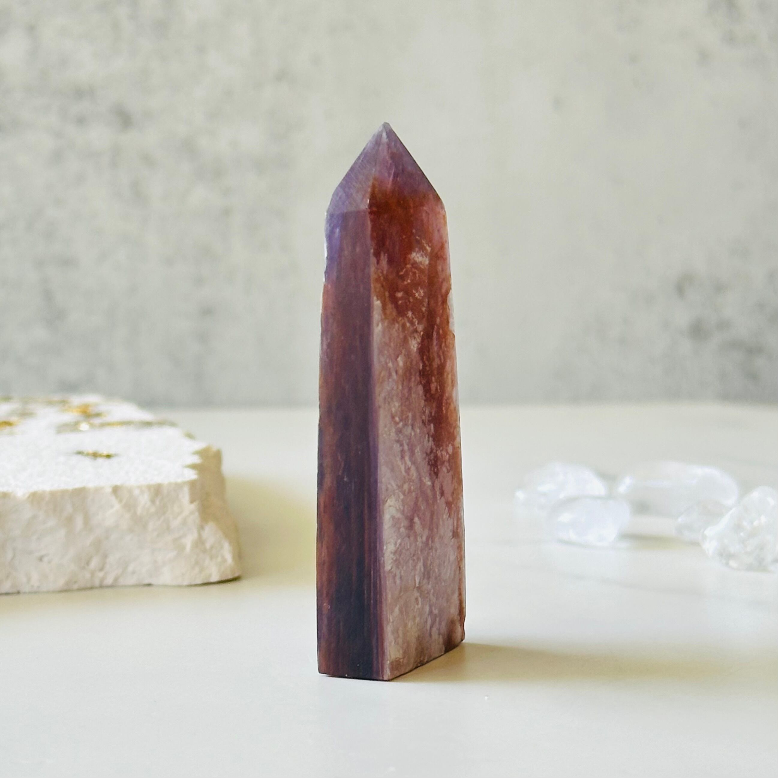 輝きが眩しいマイカタワーです。カリウムとアルミニウムを含む鉱物で、薄片状や鱗状の結晶が集まり、宝石のカケラを散りばめたように雲母がキラキラと輝きます。デスクやベッドサイドに置くだけで輝きが楽しめます。