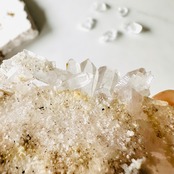 繊細な結晶群が密集したマ二カラン産水晶は、高いスピリチュアル性があると言われています。その繊細なクリスタルの輝きはまるで宝石のようです。主たる結晶の周囲には細かい白黒の結晶粒が付着し、ごま塩を振り掛けたようで可愛らしいです。部屋のインテリアやパワーストーンのコレクションにお迎えください。自然のパワーとエネルギーが閉じ込められたクラスターが、空間も心も落ち着かせて、マイナスエネルギーを払拭してくれる気がします。