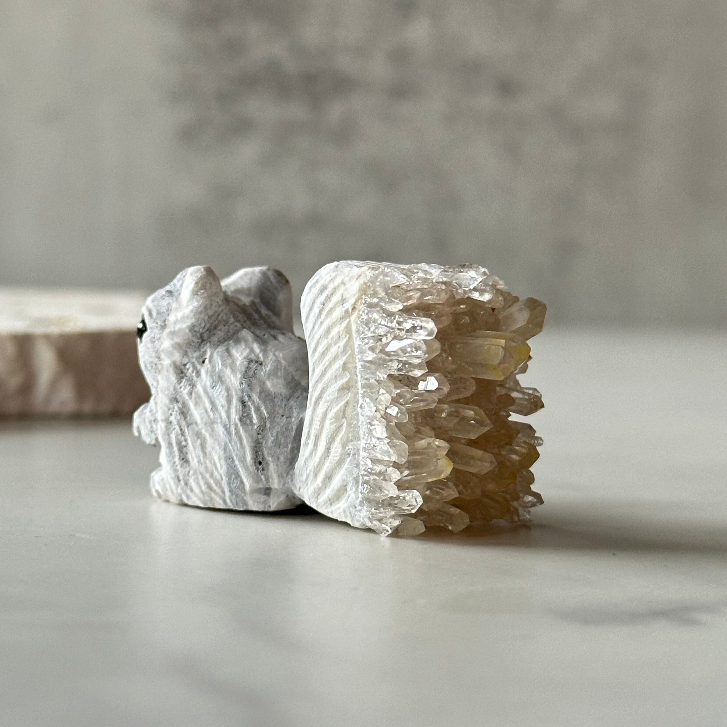 尻尾が水晶クラスターになっているリスさんです。